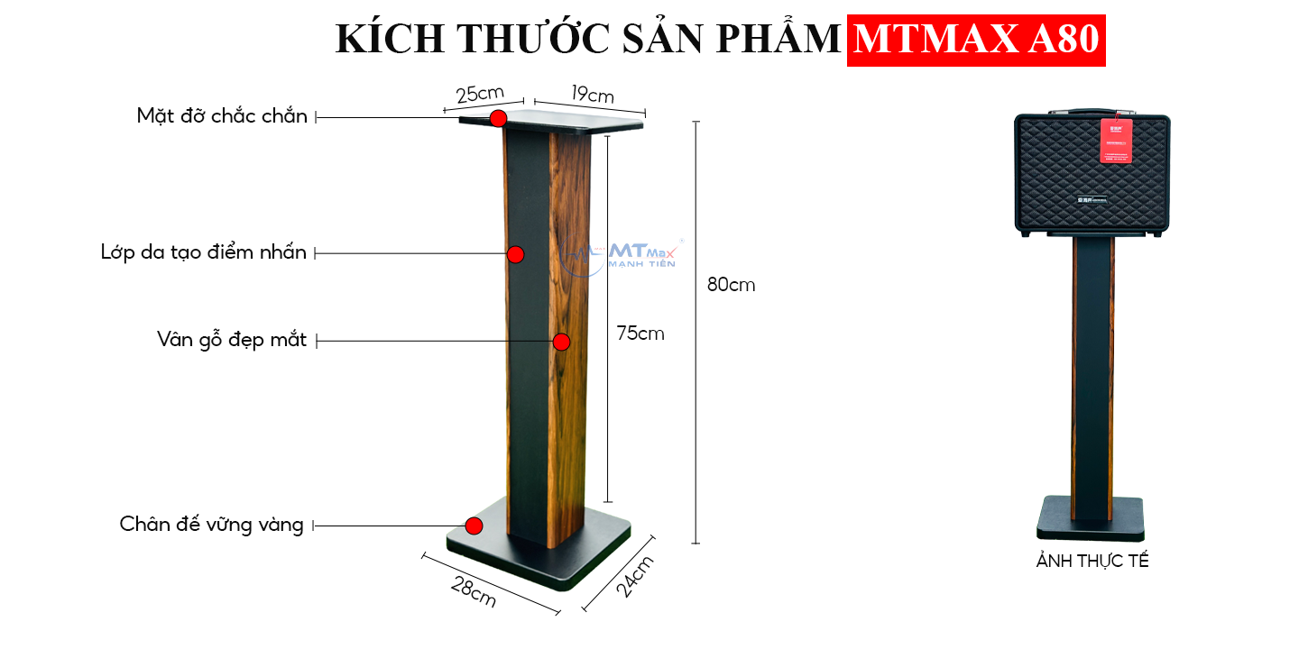 Cặp Chân Loa Gỗ Ép Cao Cấp MTMax A80 - Chân Loa Karaoke, Mixer Tải Trọng Đến 40kg. Gọn Gàng, Sang Trọng, Tối Ưu Không Gian, Giảm Rung Lắc Sản Phẩm, Giúp Âm Vang Xa Hơn