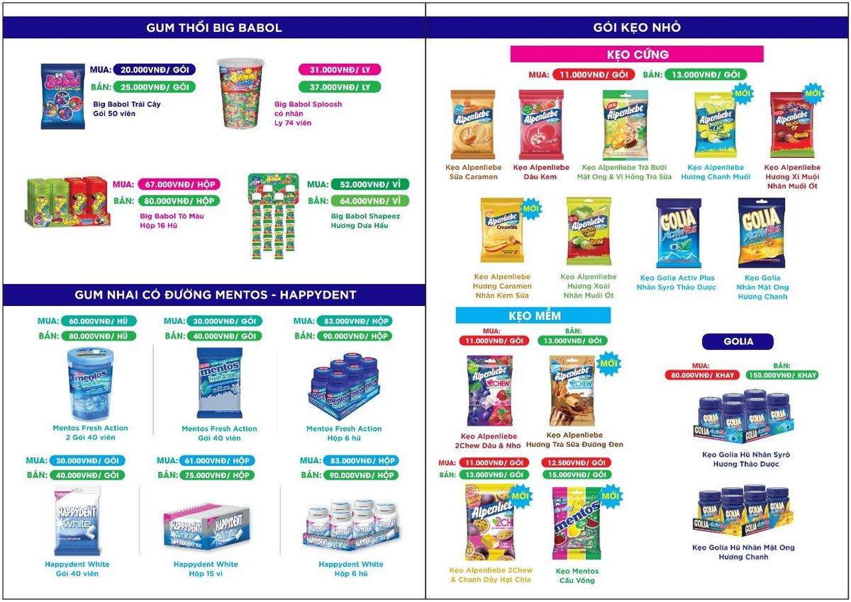 Chuyên kẹo Alpenliebe, Mentos, Golia, Happydent White