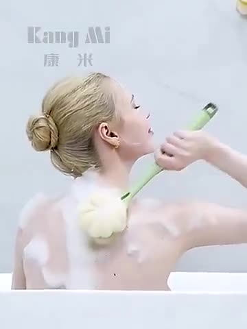 Cây bông tắm chà lưng cây bông tắm kèm bàn chải hoặc vải chà lưng tiện lợi dễ dàng sử dụng như tẩy tế bào chết cho da nhanh chóng.