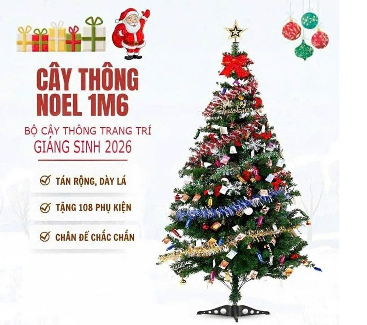 CÂY THÔNG NOEL CAO 160CM KÈM PHỤ KIỆN CHÂN NHỰA