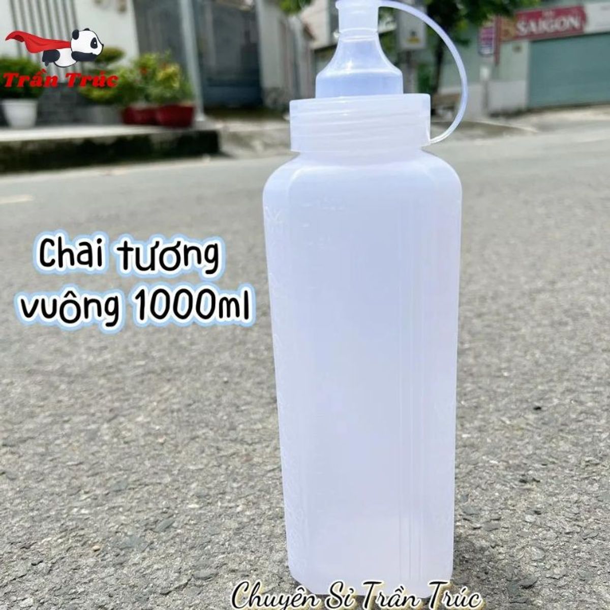 Chai nhựa vuông dung tích lớn 1000ml nắp liền, kín