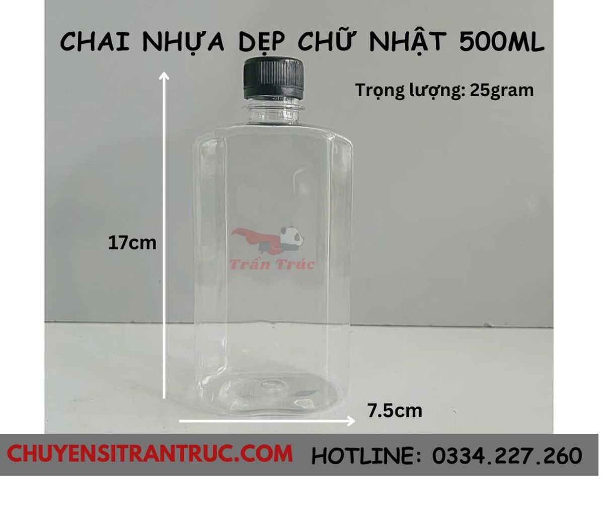 - Tên sản phẩm: Chai nhựa 500ml dẹp chữ nhật