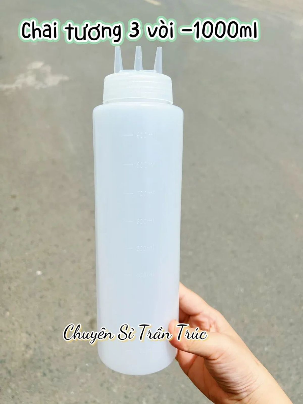 Tên sản phẩm: Chai nhựa đựng nước sốt 3 lỗ dung tích 1000ml.
