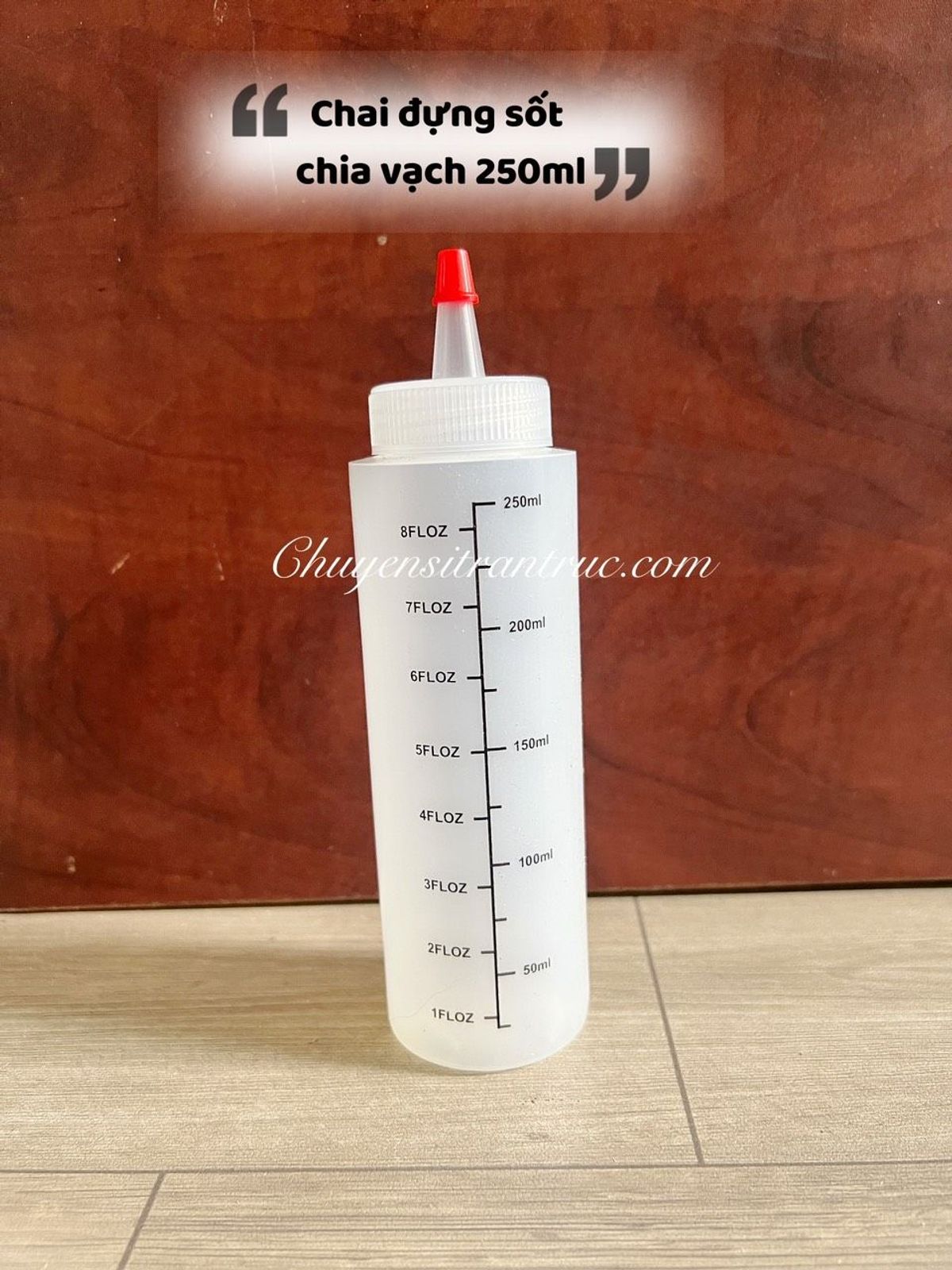 Tên sản phẩm: Chai Tương ớt có vòi, Bình Nhựa đựng sốt có vạch chia 250ml