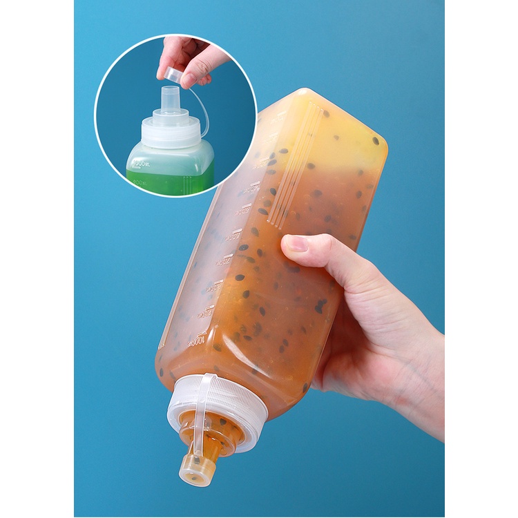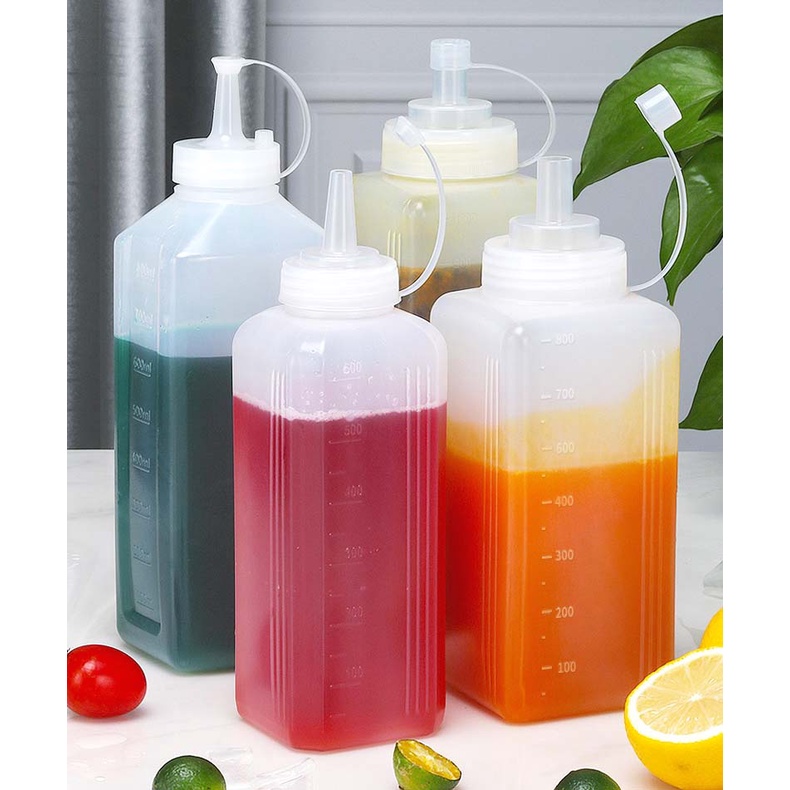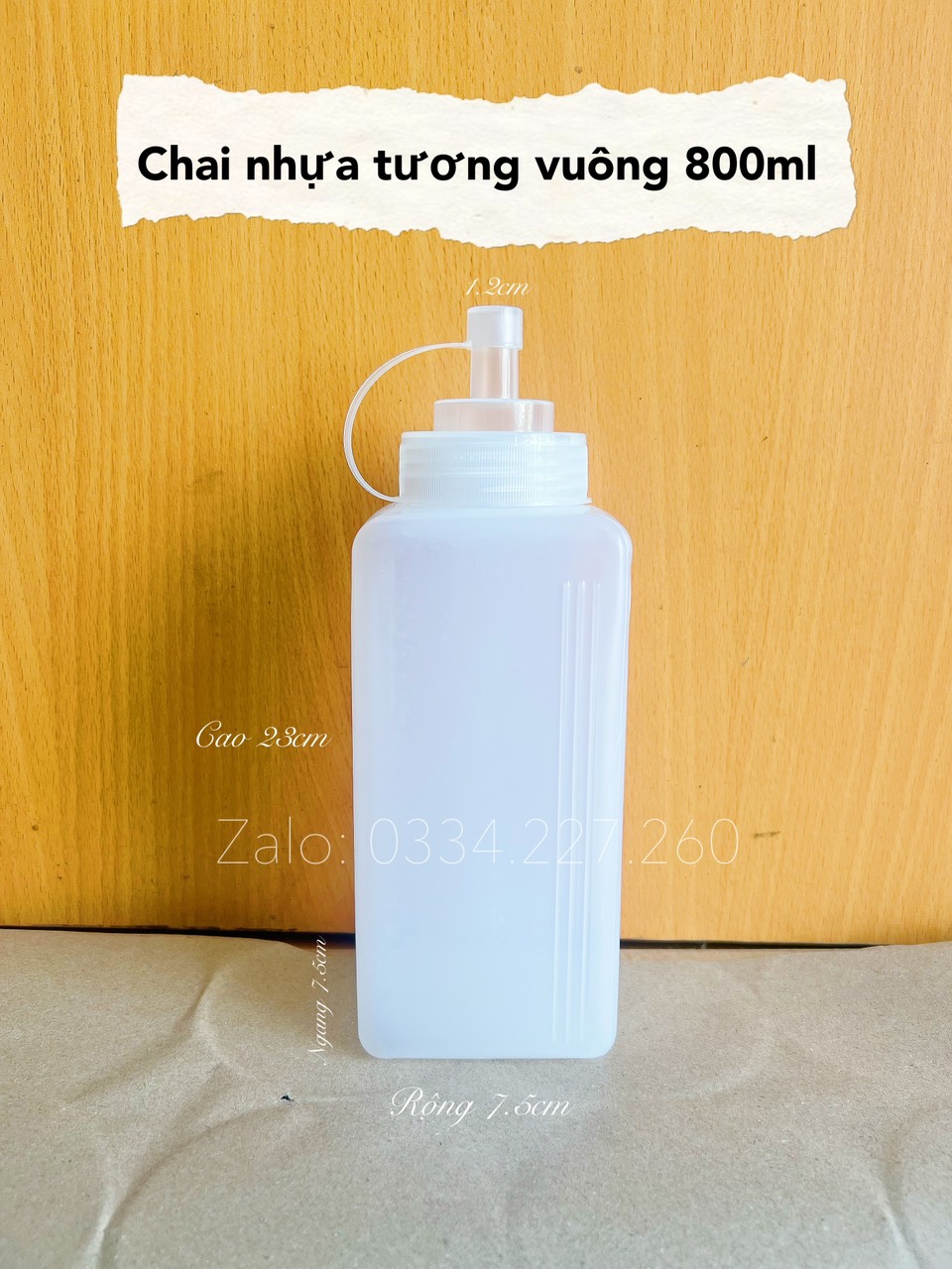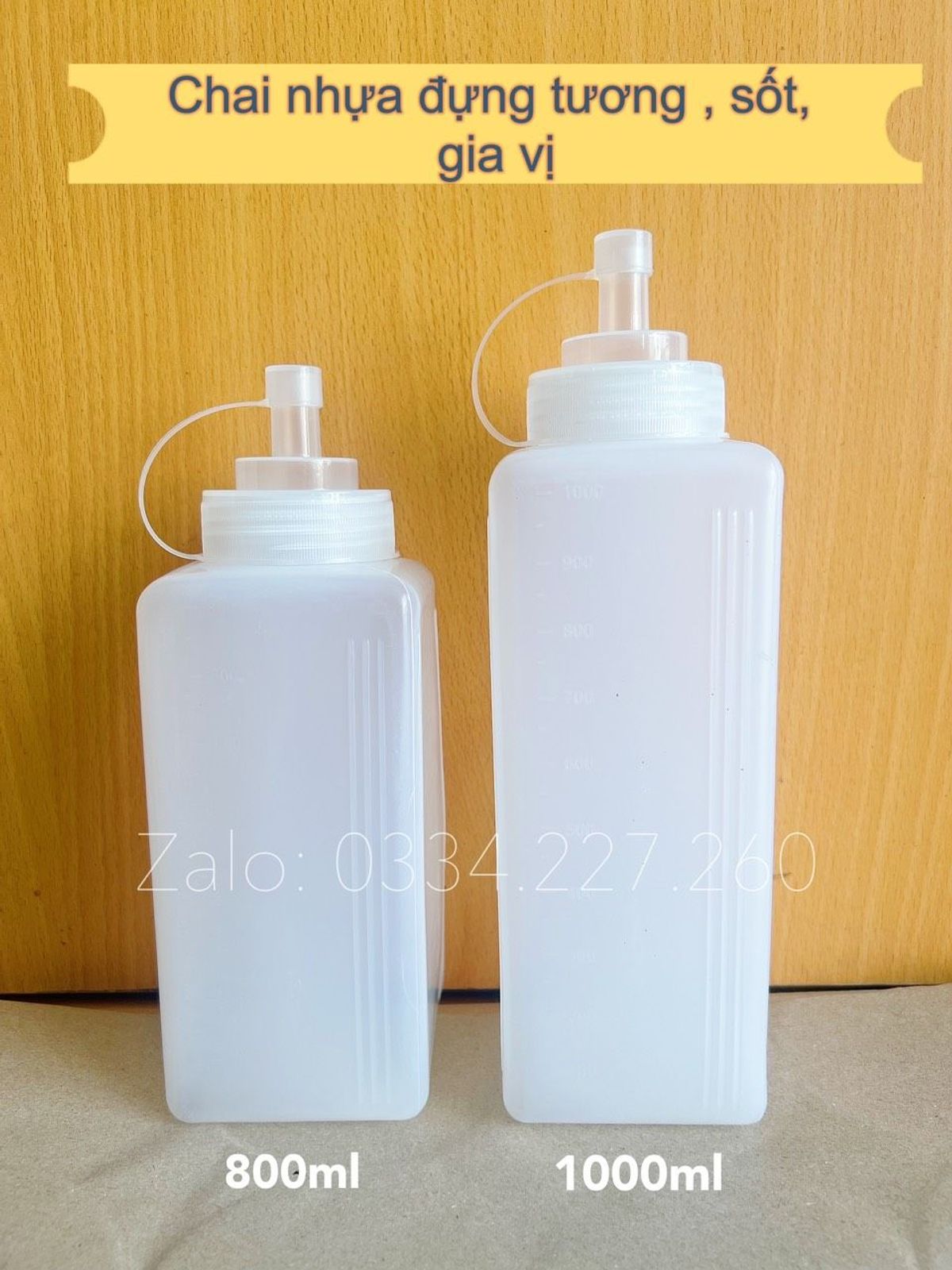 Tên sản phẩm: Chai nhựa vuông có chia vạch đựng sốt/mứt/siro