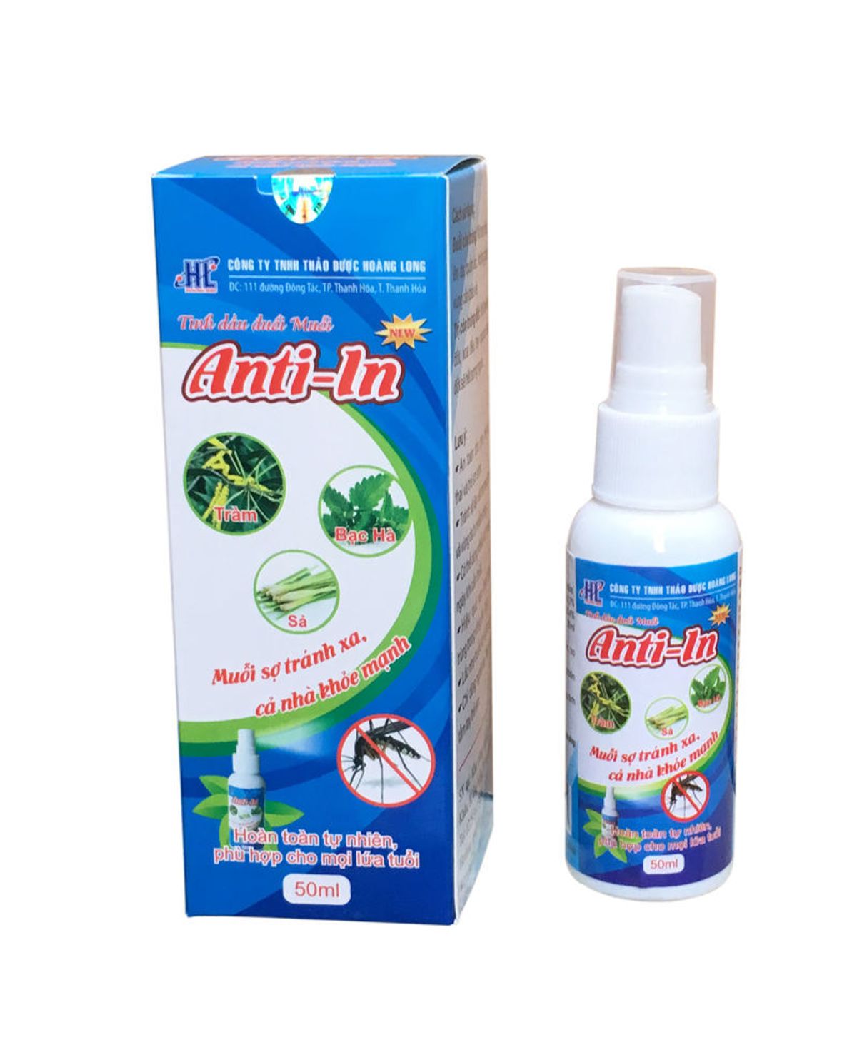 Chai xịt dạng phun xương 50ml, chứa các loại tinh dầu Bạc Hà, Tràm, Sả. Công dụng: