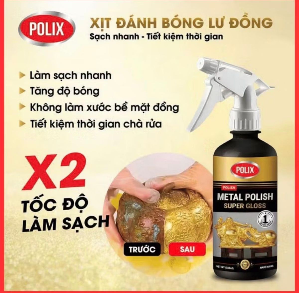 Ưu điểm sản phẩm: Dung Dịch Vệ Sinh, Đánh Bóng Đồ Đồng Sáng Bóng Polix- Giúp Làm Sạch Vết Bẩn, Gỉ Sét Trên Đồng