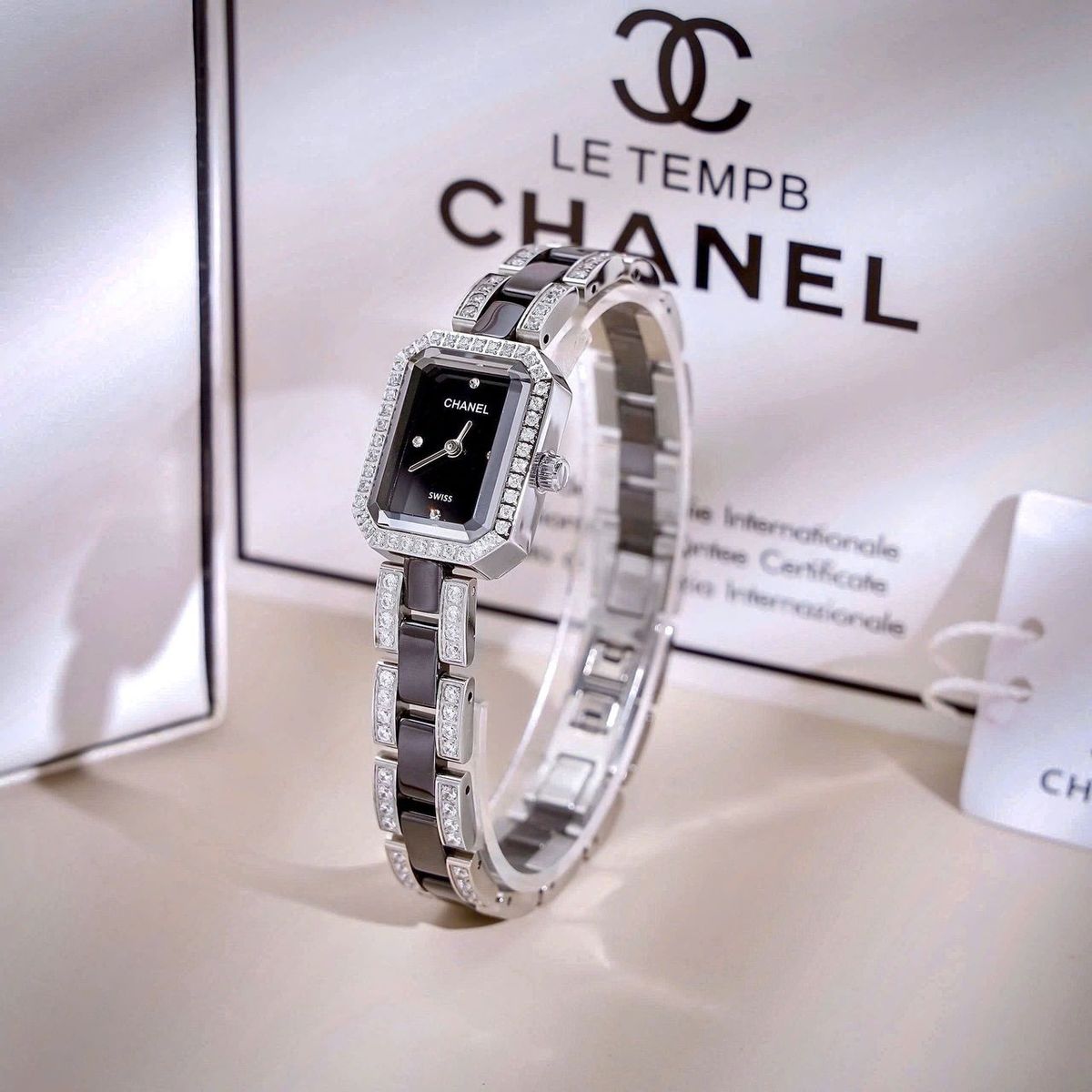 • Đồng hồ CHANEL dáng bát giác biểu tượng, viền full đá lấp lánh, mặt số tối giản sang trọng, dây gốm – thép cao cấp, tôn lên vẻ đẹp tinh tế, thời thượng và đẳng cấp tuyệt đối cho phái nữ.
