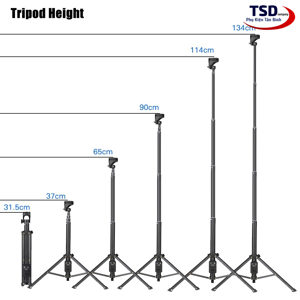 - Chiều cao tối đa 134cm (1.3m), độ cao thích hợp để có thể chụp cả người, chụp phong cảnh, chụp nhóm… mà không bị mất góc.