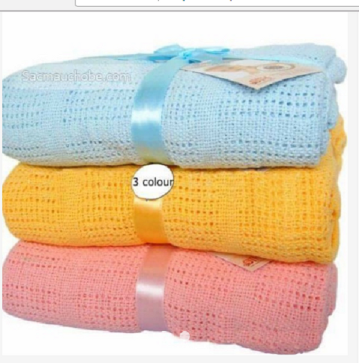 Chăn lưới Nga - chống ngạt tuyệt đối khi bé vô tình trùm chăn lên mặt. Sản phẩm được rất nhiều bà mẹ tin dùng. Với chất liệu cotton 100%, cấu tạo mắt lưới đặc biệt. 3 màu dễ thương : xanh biển, hồng, vàng -Chăn lưới là loại chăn có cấu trúc các sợi cotton đan kiểu mắt lưới vào với nhau. Chăn lưới ko chỉ thích hợp cho trẻ sơ sinh,mà còn thích hợp cho người lớn đặc biệt là người già và các mẹ bầu. -Các mắt lưới ko những giúp tạo sự thông thoáng cho bé mà còn làm giảm nguy cơ đột tử khi ngủ cho các bé vô tình úp chăn lên mặt. Cách bảo quản: -Giặt chăn/mền bằng tay và giặt riêng lẻ Nếu giặt máy,các mẹ cho vào túi giặt rồi mới bỏ vào máy -Vắt nhẹ nhàng,phơi chăn/mền trong bóng râm -Không dùng chất tẩy với chăn/mền, không cho chăn/mền vào máy vắt/sấy Ủi/là chăn/mền ở chế độ nhẹ nếu thấy cần thiết -Chất liệu: 100% cotton