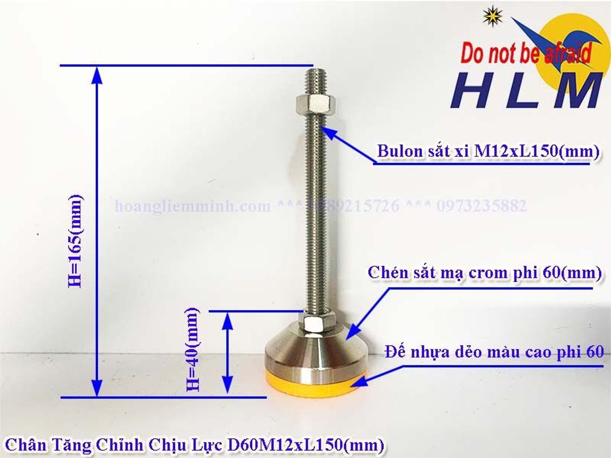 Chân tăng chỉnh chịu lực D60M12xL150(mm) | Chân tăng chỉnh Chịu Lực | Chân tăng chỉnh