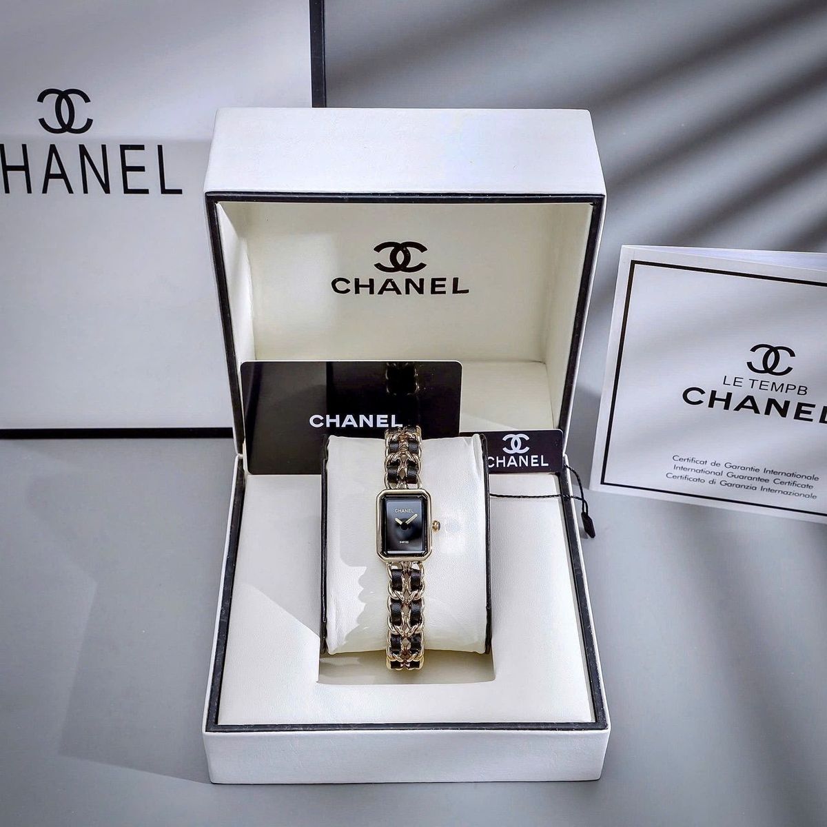 • Đồng hồ Chanel nữ nổi bật với thiết kế mặt vuông cổ điển, dây xích da phối kim loại sang trọng và mặt số đen tinh tế. Phong cách thanh lịch pha nét thời trang cao cấp, dễ phối trang phục, tôn vinh khí chất quý cô hiện đại và đẳng cấp.
