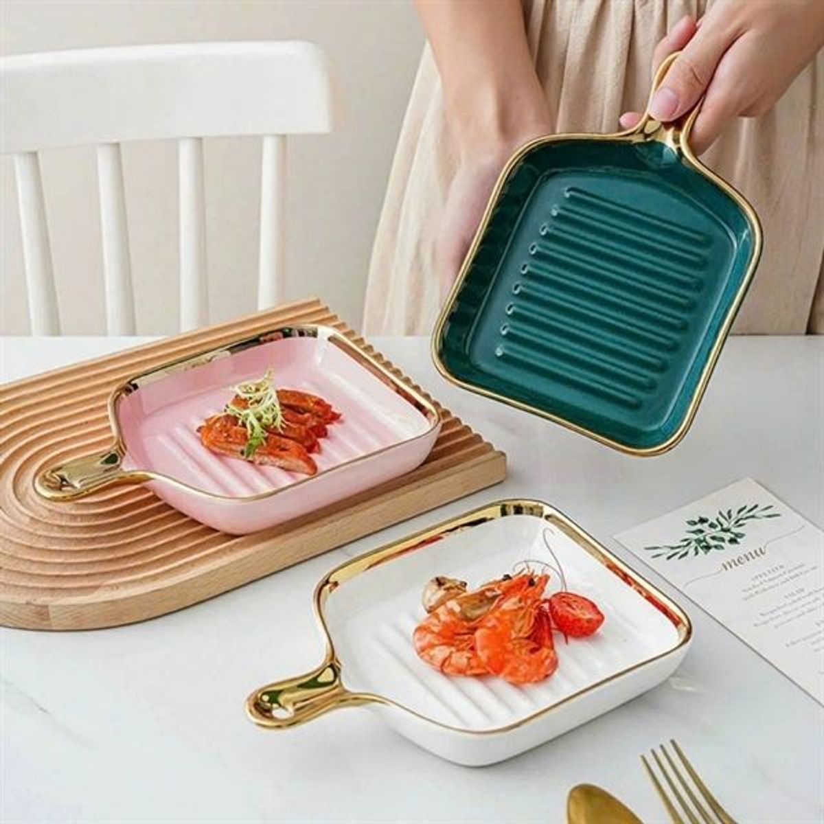 Chảo đĩa sứ tay cầm viền vàng (THÙNG 48C) giá sỉ - giá bán buôn