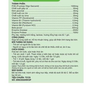 - Trẻ em từ 1 đến 6 tuổi: Ngày uống 1 đến 2 lần, mỗi lần 1 gói.