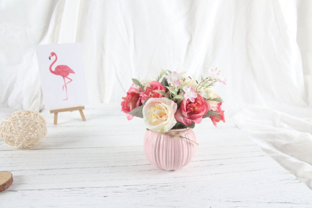 Chất liệu: nhựa , chậu sứ,hoa giả Quà tặng thích hợp cho bạn bè, người thân, hoặc trang trí bàn, kệ, gốc học tập.... #hoamini #chauhoadeban #hoalua #chauhoanho