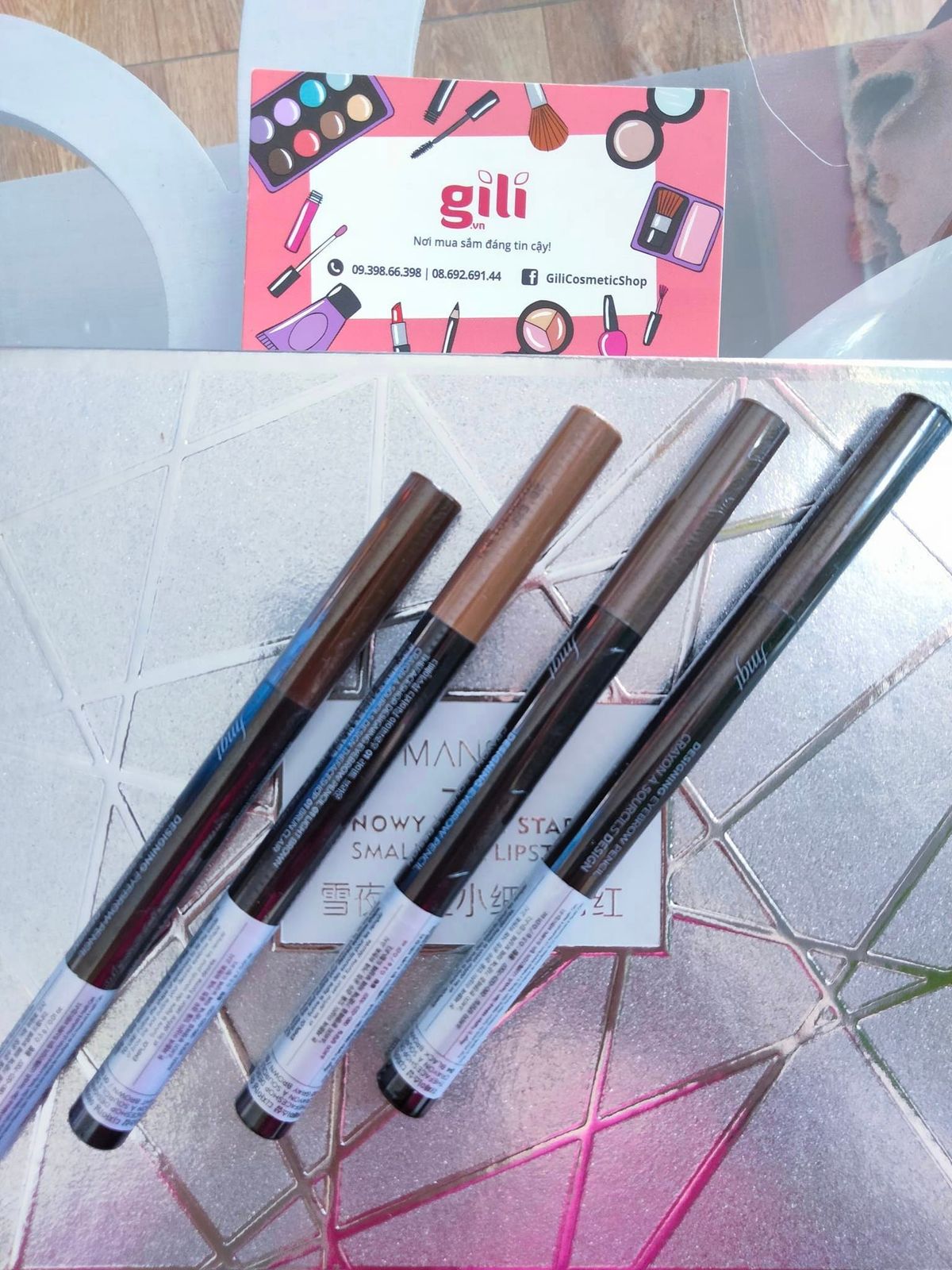 Vặn chì lên khoảng 3mm rồi vẽ theo khuôn chân mày, sử dụng đầu chải để điều chỉnh lại cho chân mày gọn và bám đều màu.