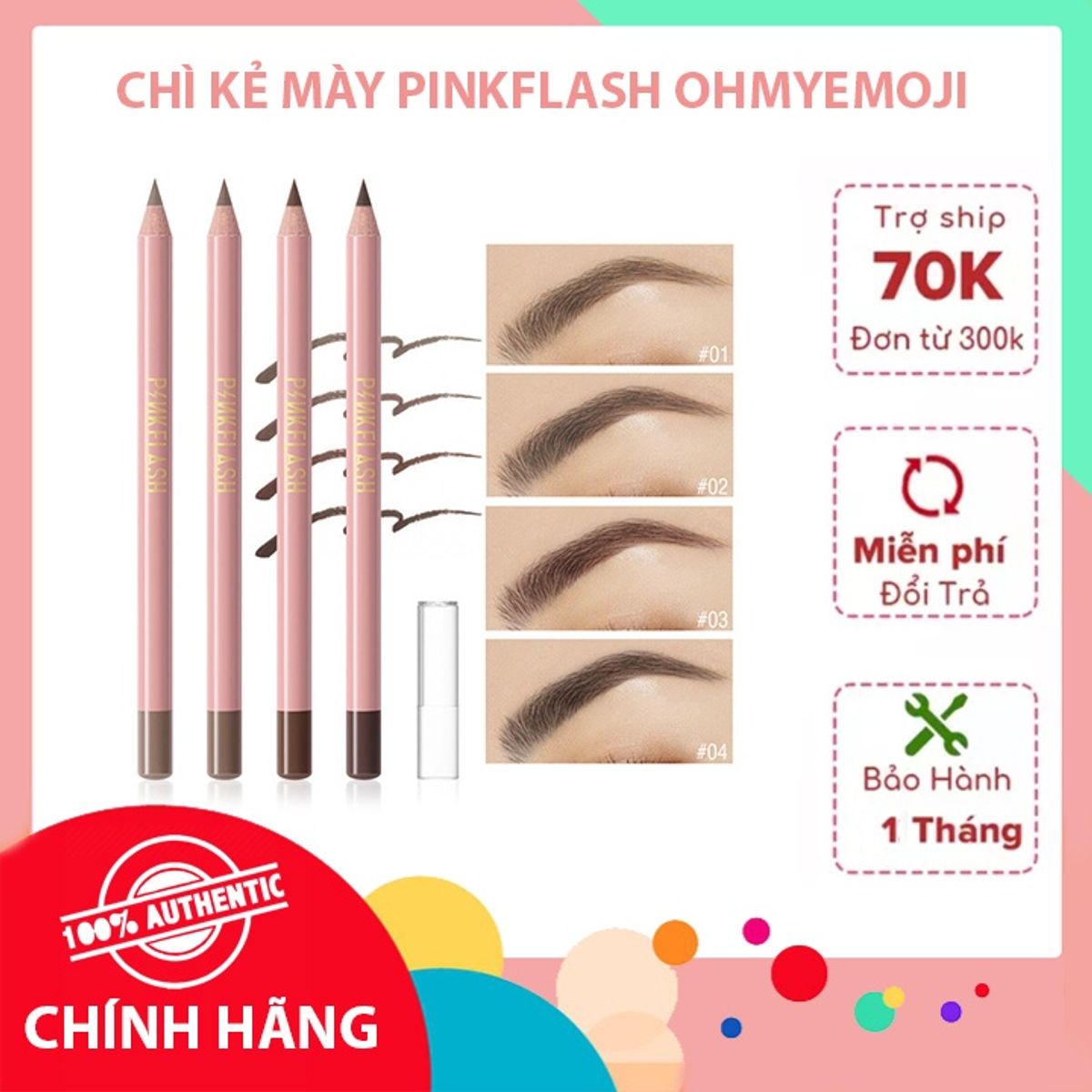 - Chì kẻ mày PINKFLASH nhẹ nhàng và không gây kích ứng, chứa vitamin E giúp bảo vệ tốt nhất cho làn da.