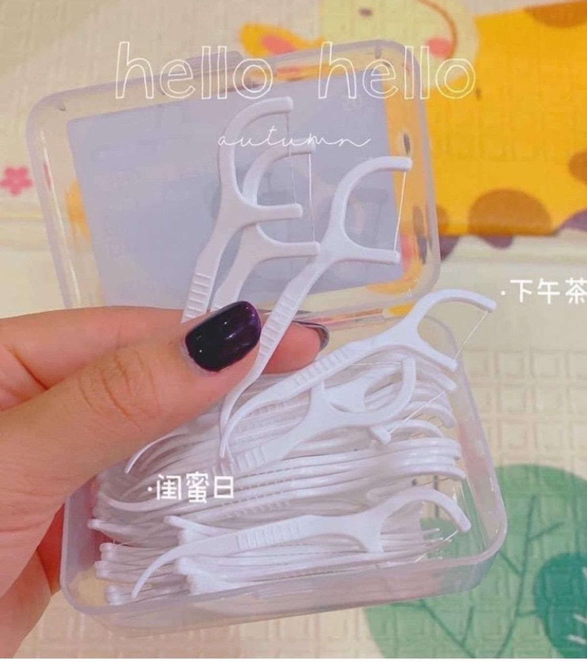 CHỈ NHA KHOA HÀNG NỘI ĐỊA ( 1 hộp 50 cái )HÀNG NỘI ĐỊA dùng siêu sướng nha mn. Dây siêu mịn. Ai đã dùng e nó rồi thì chắc hẳn vứt đi đám tăm thông thường hay dùngTác dụng của e nó giúp lấy thức ăn một cách sạch sẽ mọi kẽ răng chân lợi.giúp răng tránh khỏi sâu kẽ răng- tụt lợi- viêm lợi- răng thưa….tuy bé nhưng lại có võ đấy ạ.