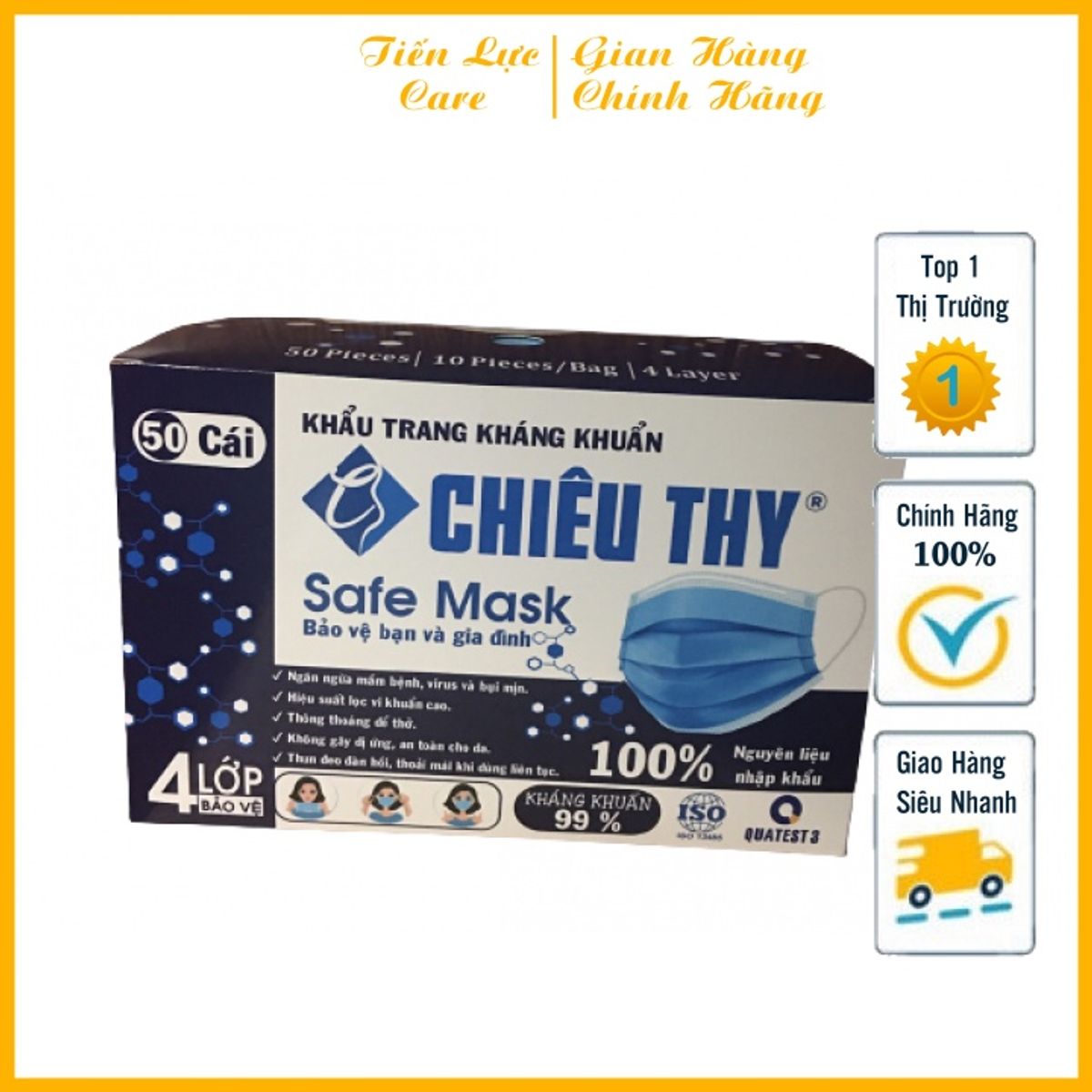 Chính Hãng-Khẩu Trang Y Tê 4 Lớp Kháng Khuẩn Cao Cấp Màu Xanh Chiêu Thy Hộp 50 Cái