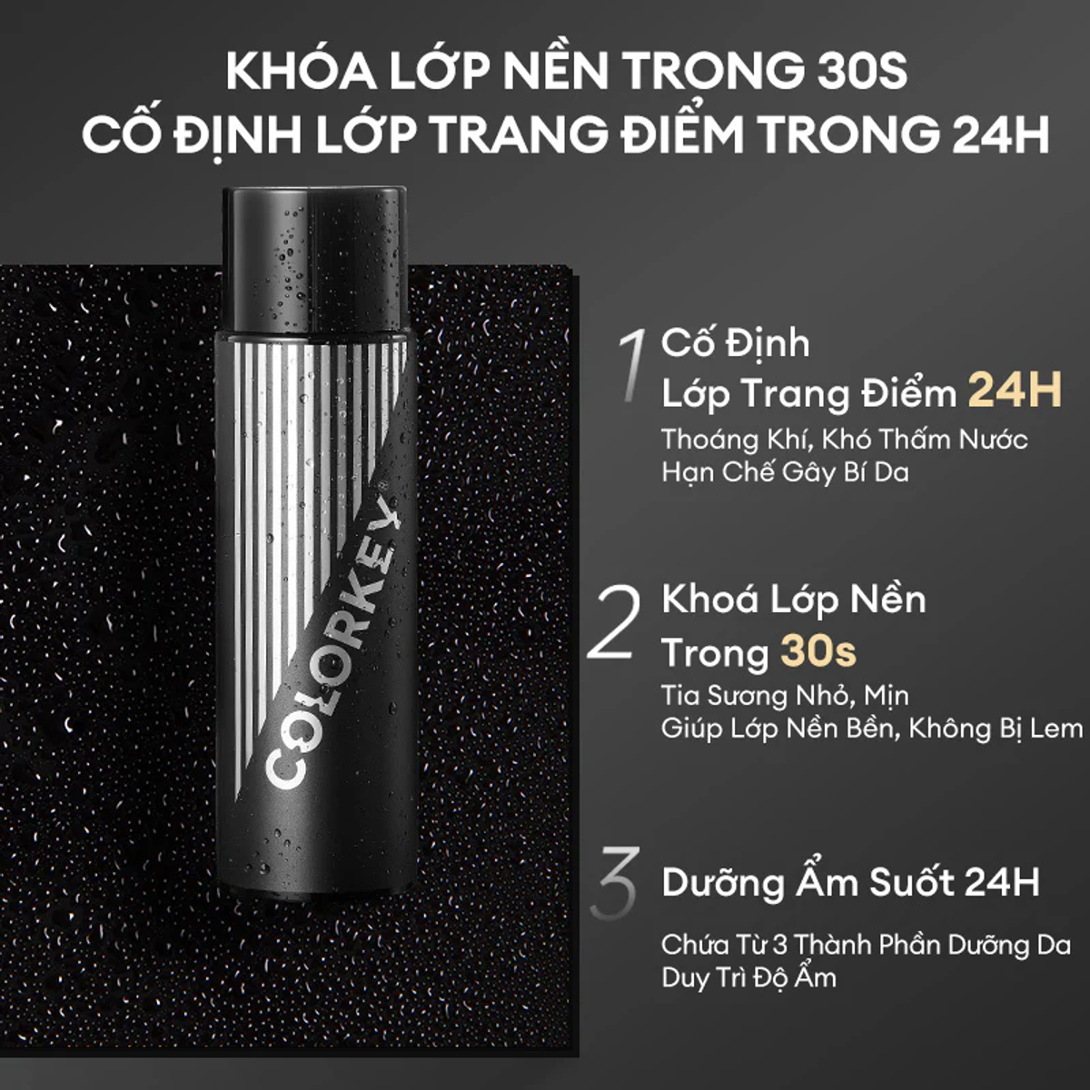 Xịt Khoáng Khóa Nền Colorkey Đen 100ml giúp cố định lớp trang điểm lâu trôi, cấp ẩm cho da, làm da mềm mịn và tươi sáng tự nhiên.