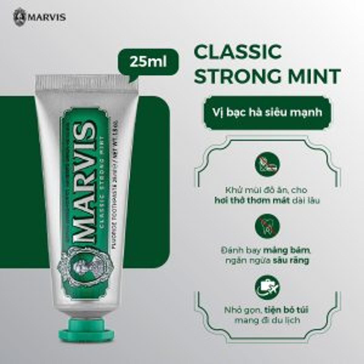 💎 Kem đánh răng Marvis 25ml xanh lá giúp làm sạch răng, ngừa mảng bám và cao răng, mang lại hơi thở thơm mát suốt cả ngày. 🌿 Công thức cao cấp từ Ý, an toàn cho cả người lớn và trẻ em. ✨