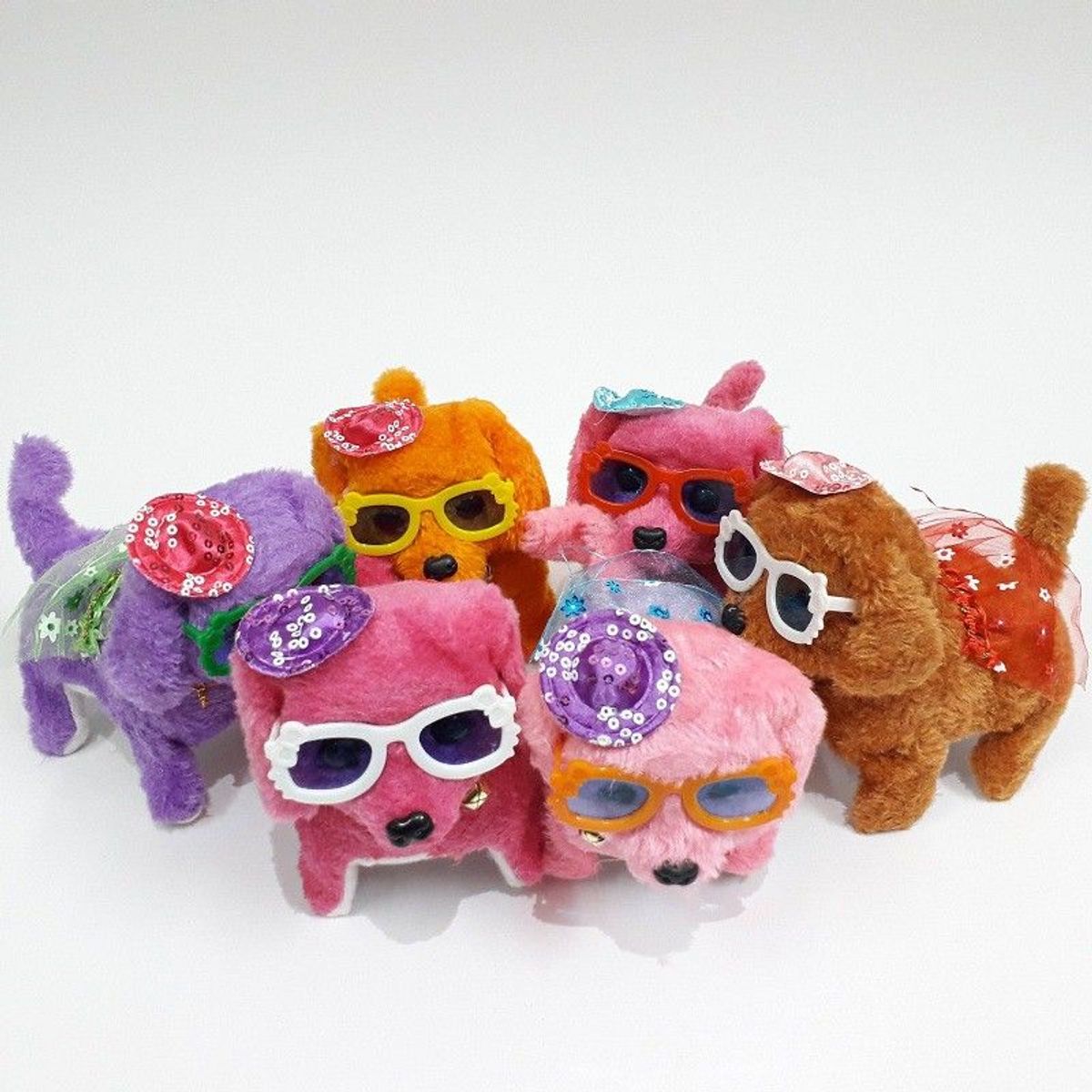 Chó bông mặc áo và đội nón với tạo hình đeo mắt kính siêu ngầu, sẽ là người bạn thân thiết của trẻ nhỏ. Chú chó có thể đi bộ, lắc đuôi, sủa và sáng đèn khi ấn công tắc ở dây. Là quà tặng ý nghĩa cho bé yêu trong các dịp sinh nhật thôi nôi. Là một con cho bông thôi, nhưng nó có thể làm các động tác đi lại, lắc mông, sủa hơn cả một con chó thật.