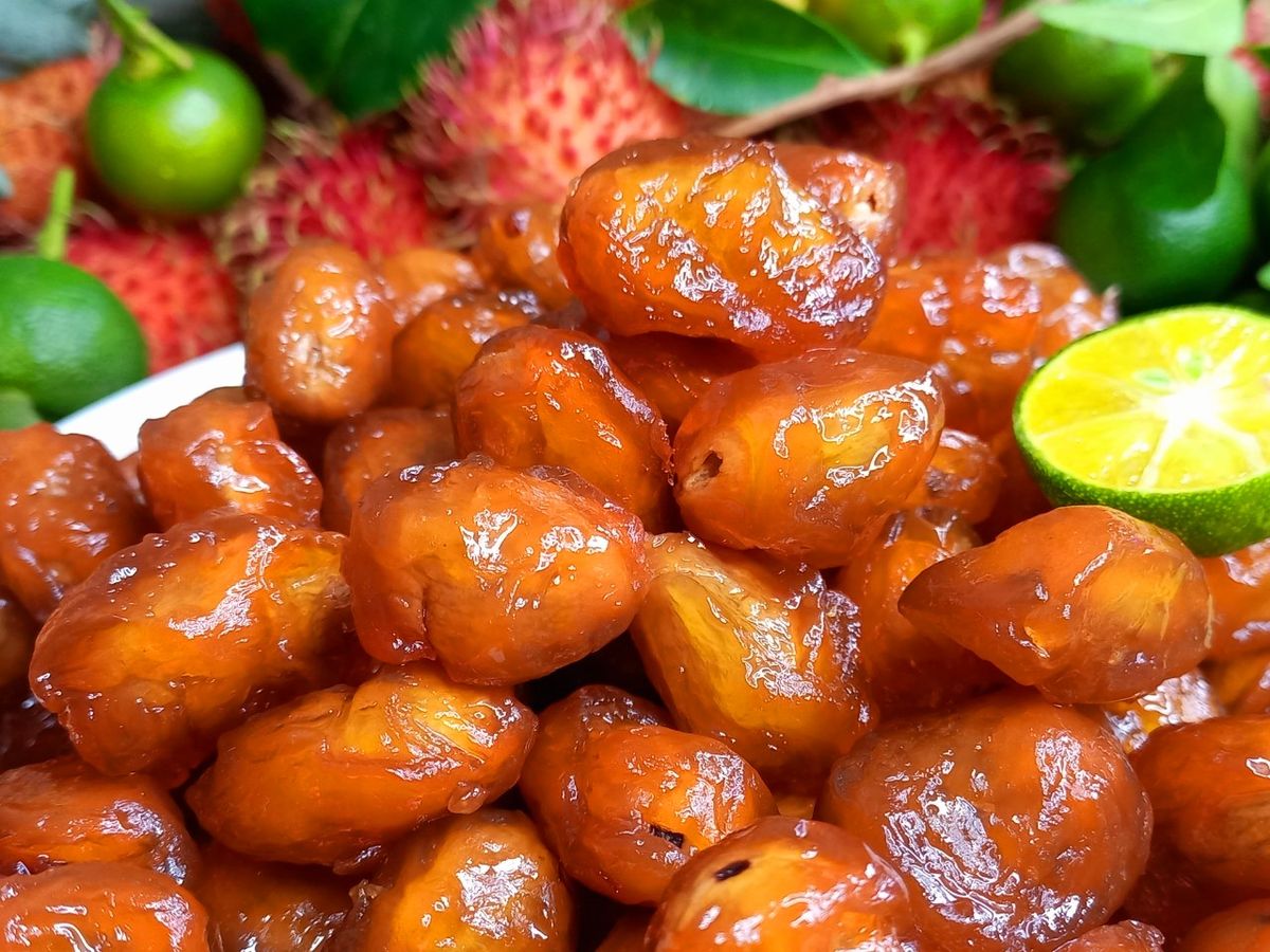 Nếu ai đã từng thưởng thức qua món mứt chôm chôm, hẳn sẽ không thể nào quên được hương vị ngọt thanh, thơm mát, chút dẻo dai của quả chôm chôm. Mứt chôm chôm không chất bảo quản, được chế biến thủ công của người dân địa phương vẫn giữ được hương vị chua ngọt. Bên cạnh cách làm mứt truyền thống thì mứt chôm chôm được phơi sấy qua hệ thống máy sấy hiện đại giúp mứt chôm chôm được khô ráo, cơm dẽo dai hơn.