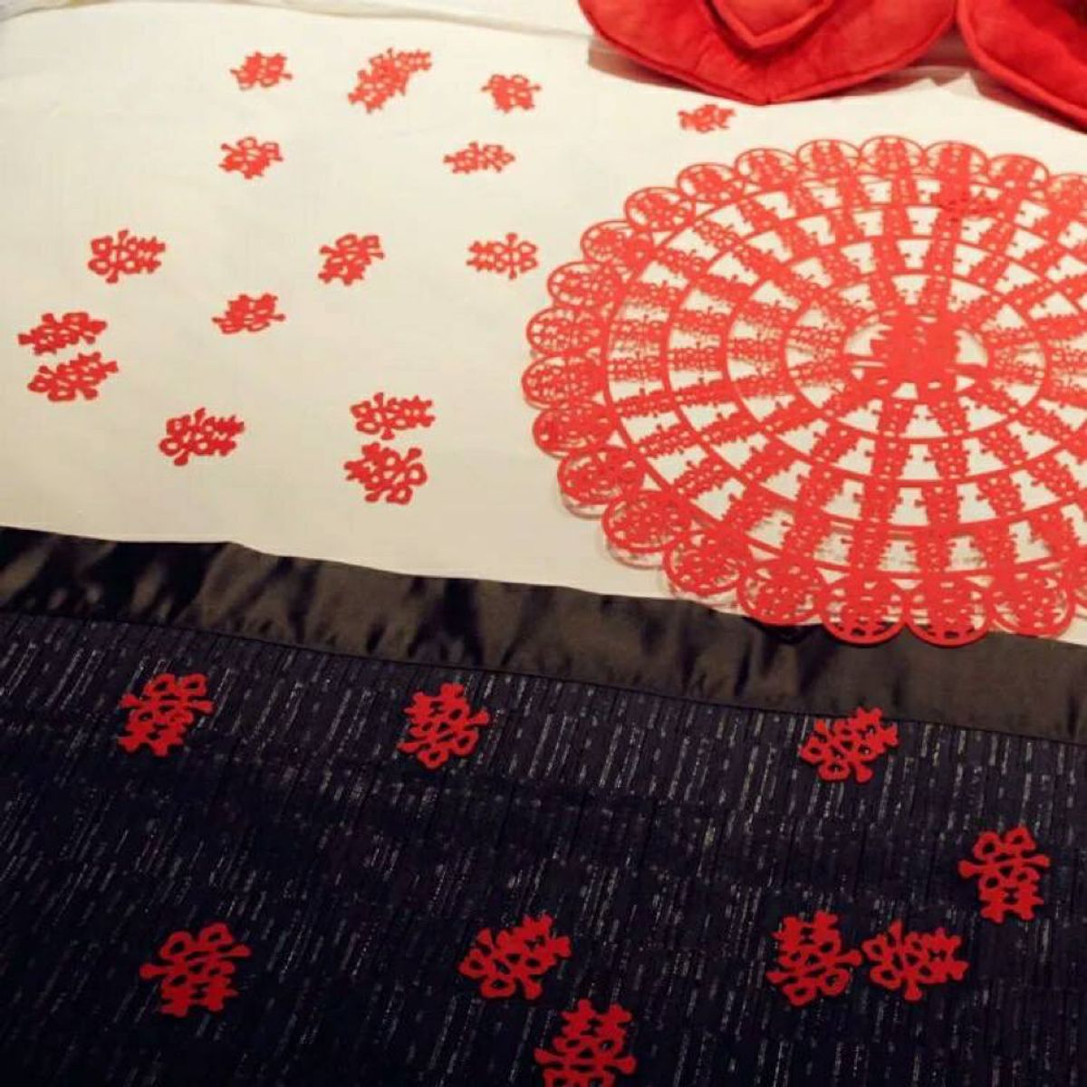 Chữ Hỷ nho nhỏ có 3 mẫu cho bạn chọn, trang trí trên bàn, trên dĩa bánh kẹo, trên giường tân lang tân nương, dán trên ly dâng trà, trái cây...