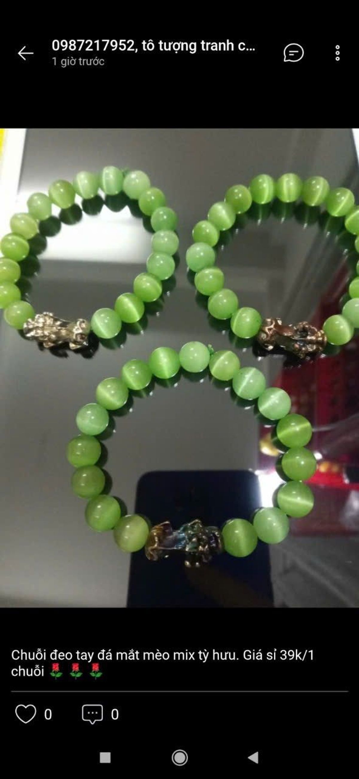 Chuỗi đeo tay đá mắt mèo 10ly mix mặt tỳ hưu nha giá sỉ/bán buôn