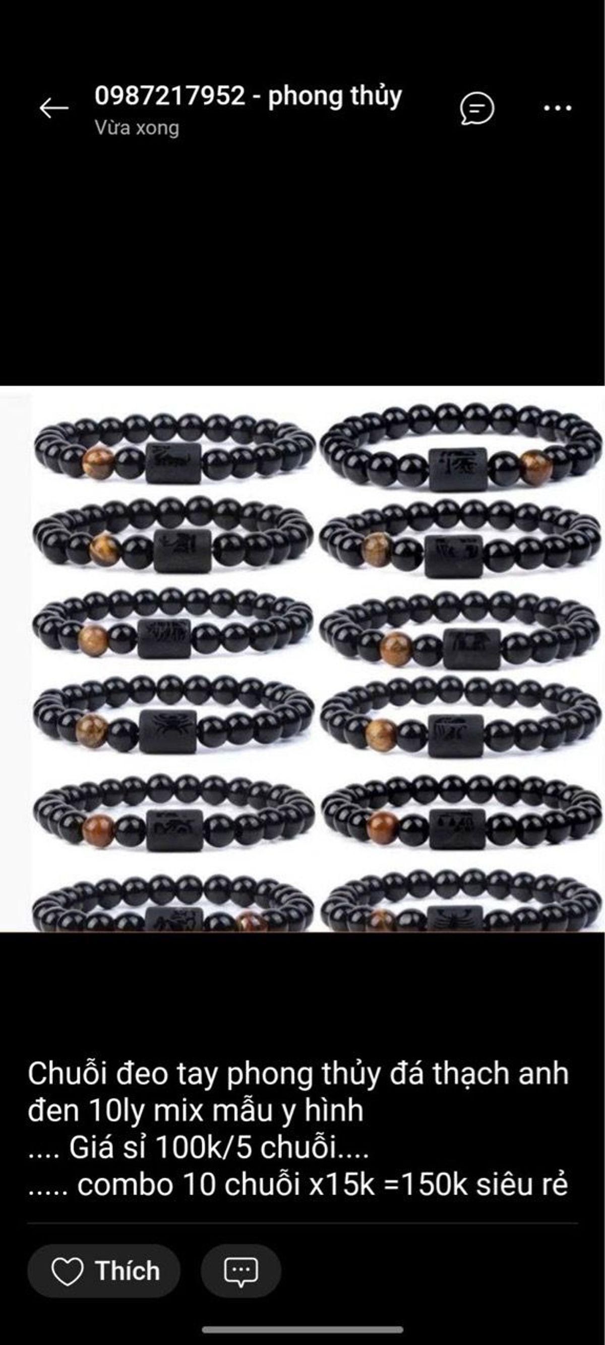 Chuỗi đeo tay đen đá thạch anh 10ly 15k rẻ giá sỉ/bán buôn