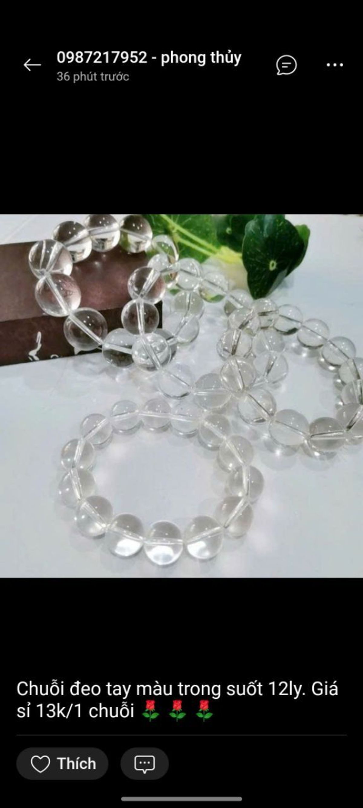 Chuỗi đeo tay phong thủy 12ly đẹp màu trong suốt nhe giá sỉ - giá bán buôn