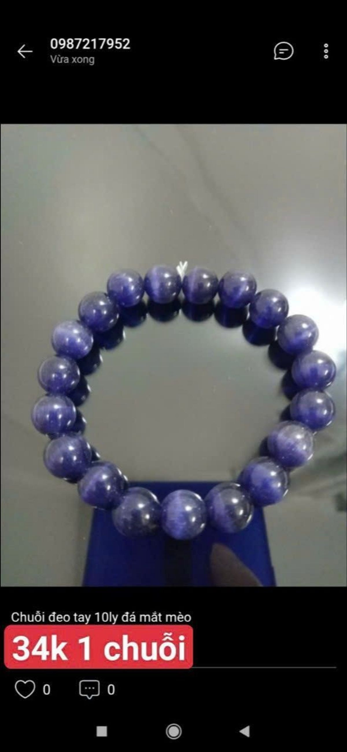 Chuỗi đeo tay phong thủy đá mắt mèo size 10ly giá sỉ/bán buôn