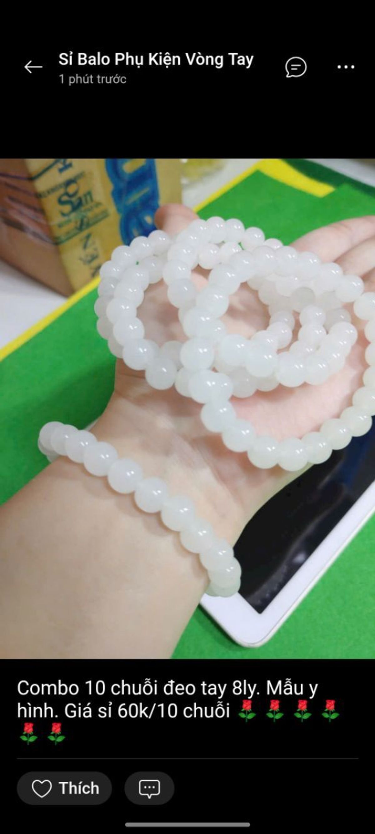 Chuỗi đeo tay phong thủy màu trắng đá 8mm giá sỉ - giá bán buôn