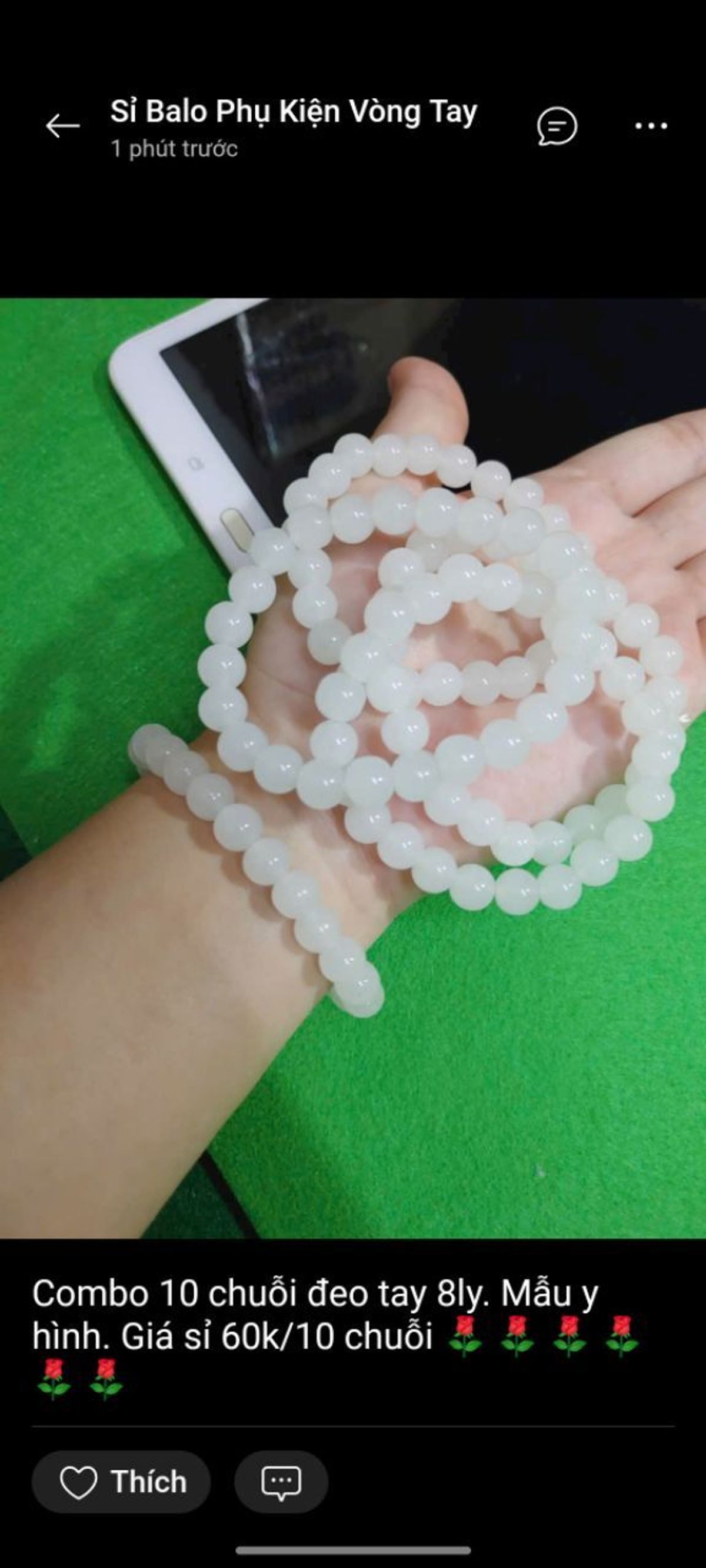 Chuỗi đeo tay phong thủy màu trắng đá 8mm giá sỉ - giá bán buôn