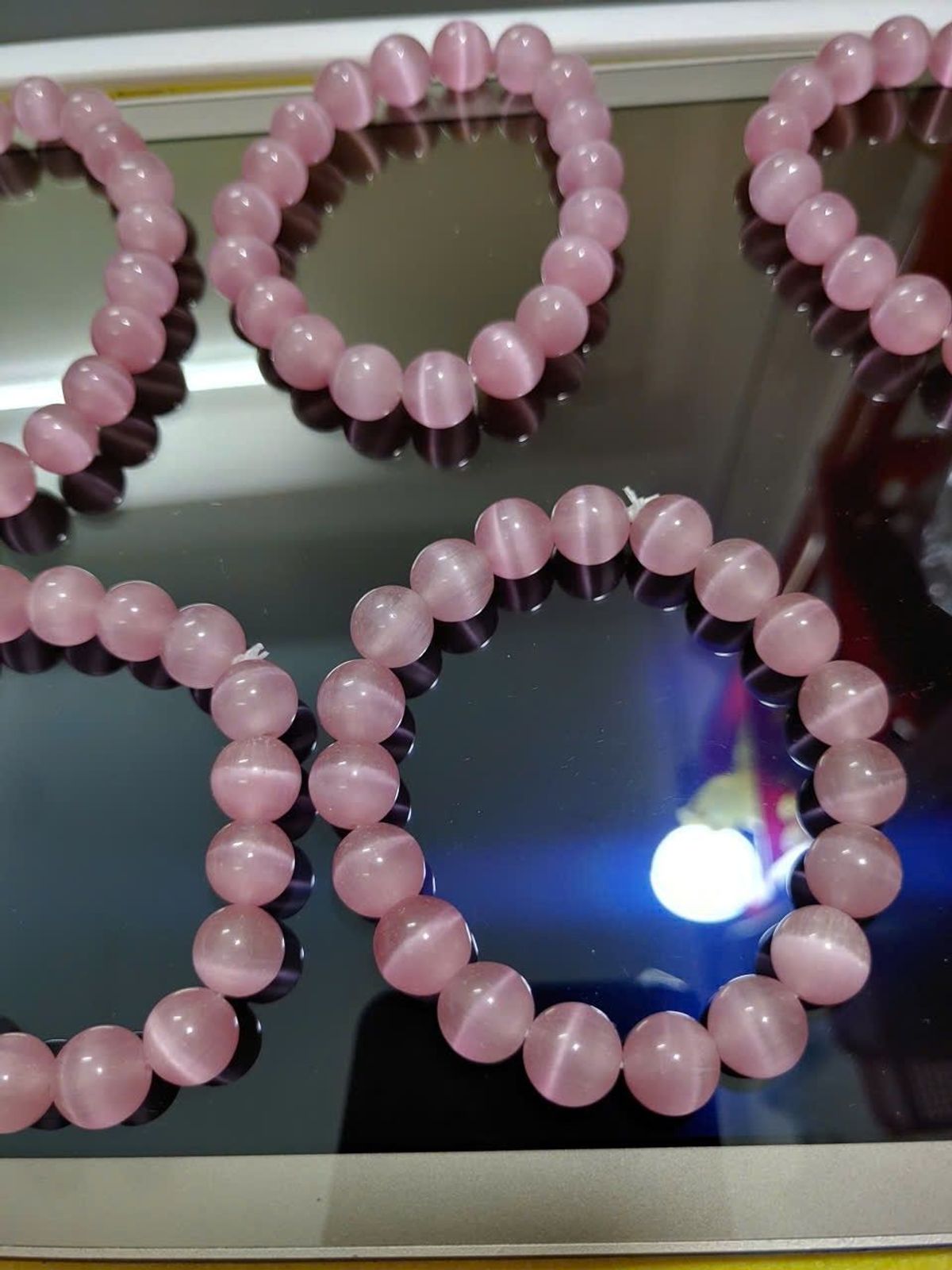 Chuỗi phong thủy đeo tay đá mắt mèo 10 li màu hồng giá sỉ/bán buôn