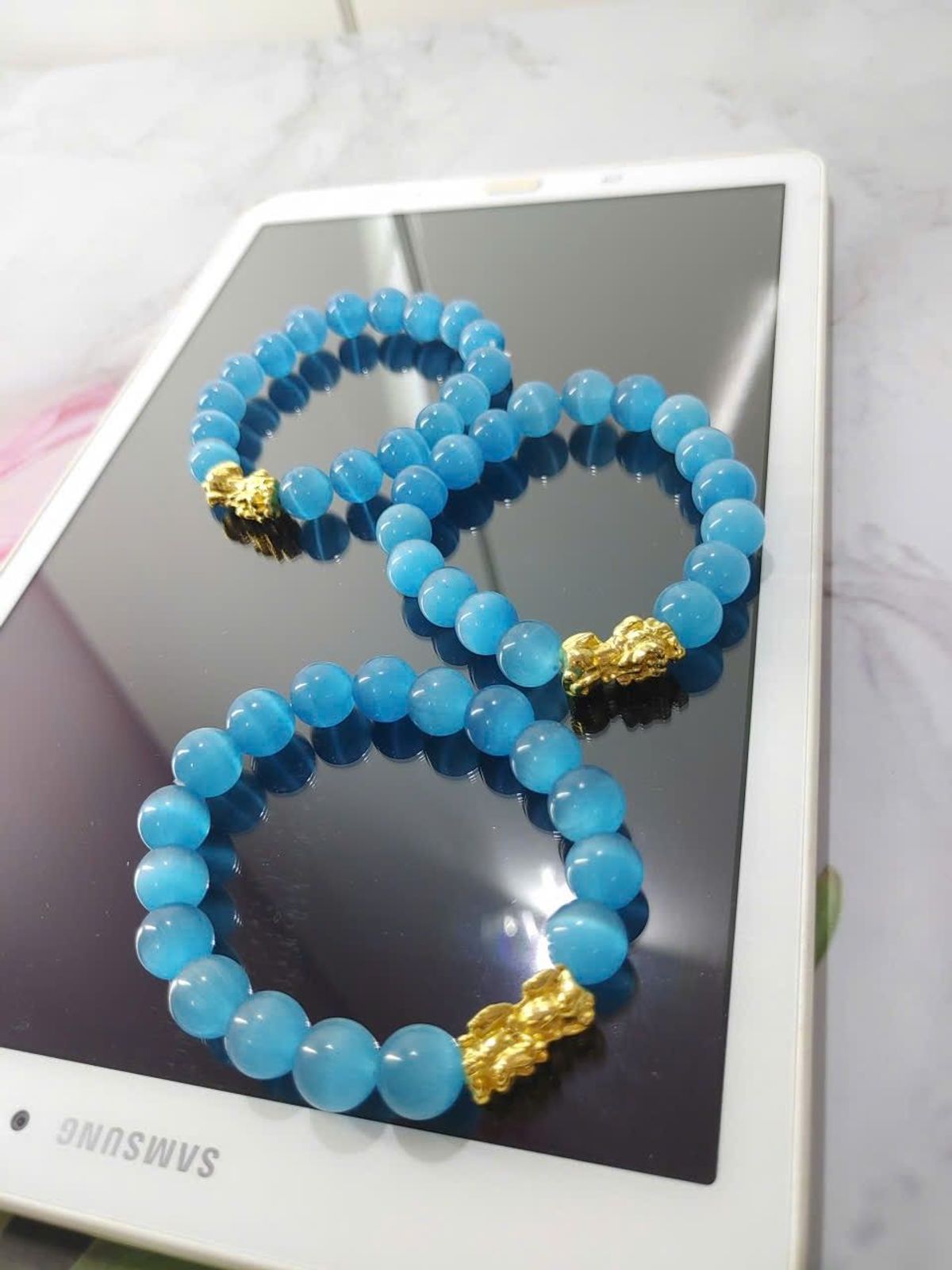 Chuỗi phong thủy đeo tay đẹp 10ly đá mắt mèo mix tỳ hưu màu xanh giá sỉ/bán buôn