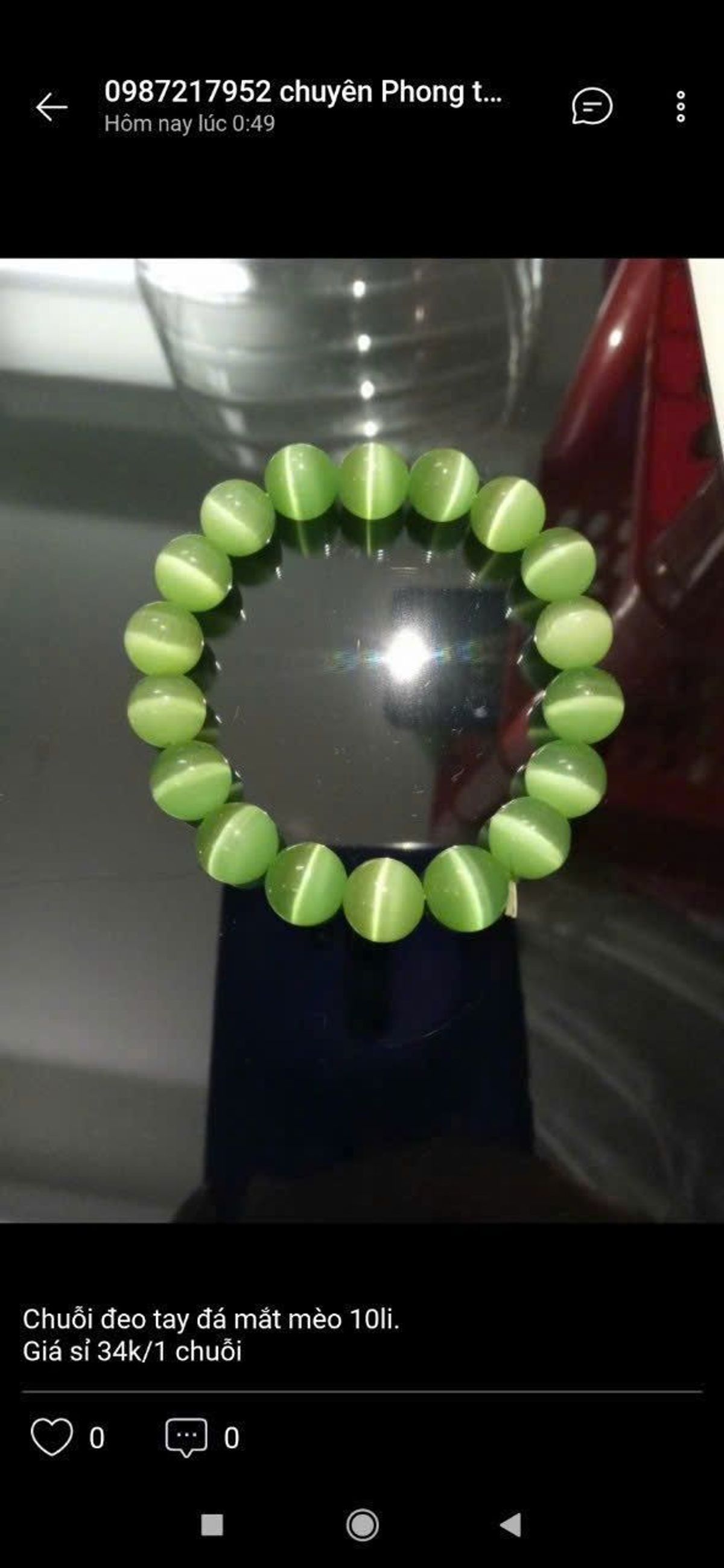 Chuỗi vòng đeo tay mẫu y hình nha chuỗi đá mắt mèo xanh lá 10 ly giá sỉ - giá bán buôn