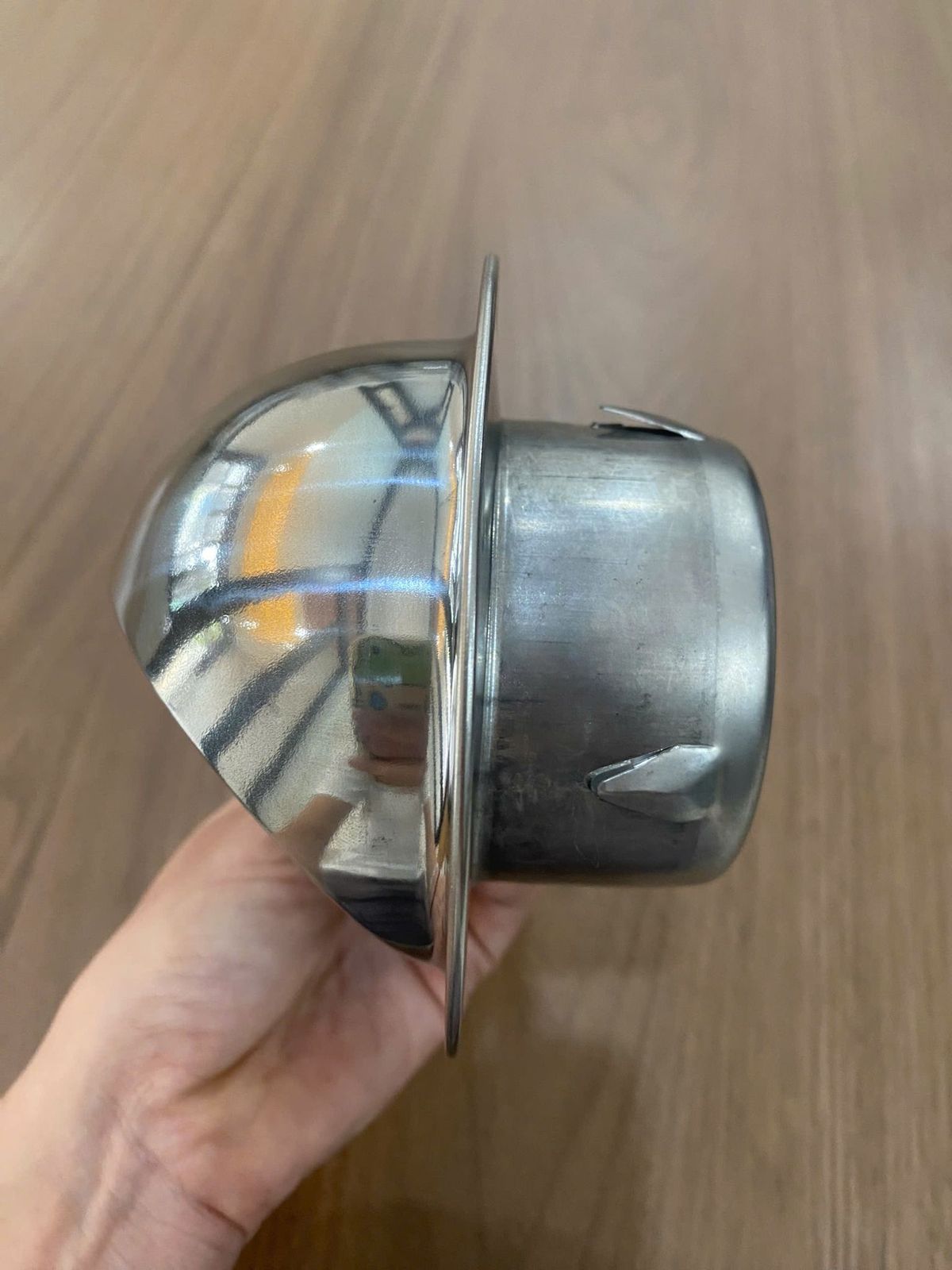 - Sản phẩm được làm từ inox với thiết kế nắp chụp tròn cùng các cánh lá xếp nghiêng song song giúp chống mưa và tích hợp sẵn lưới chắn côn trùng lỗ nhỏ, thích hợp sử dụng làm cửa gió thải hoặc cửa cấp gió tươi ngoài trời.