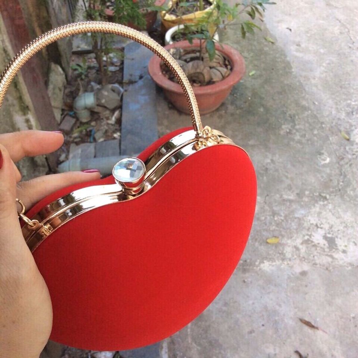 Cluth nhung hình trái tim Cầm dự tiệc bao sang chảnh nhen Chất liệu: nhung Kích thước: 22cm bb Màu: đen, đỏ Si sl giá tốt