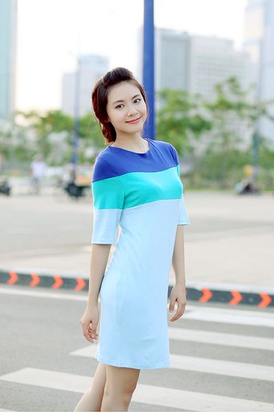 Cơ sở - váy suông phối 3 màu trẻ trung