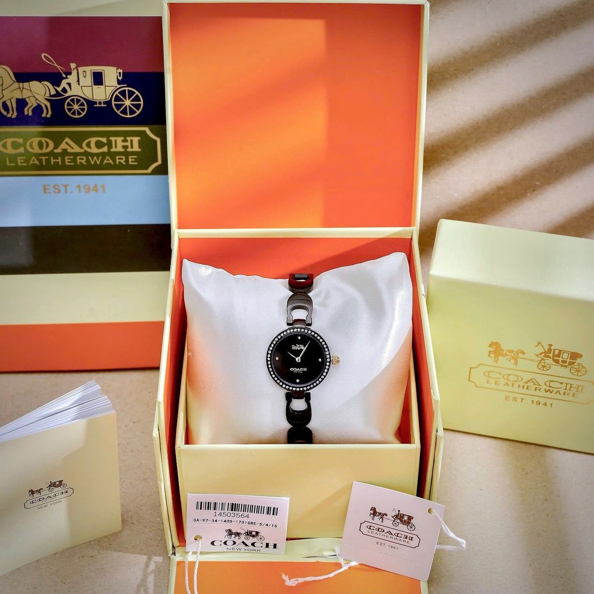 • Đồng hồ Coach cao cấp, mặt tối giản, viền đá lấp lánh – lựa chọn hoàn hảo cho quý cô yêu sự thanh lịch và đẳng cấp
