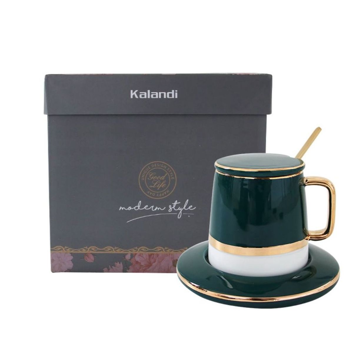 Cốc Sứ Nắp Sứ CC KALANDI Xanh Trắng RẺ (THÙNG 32B)