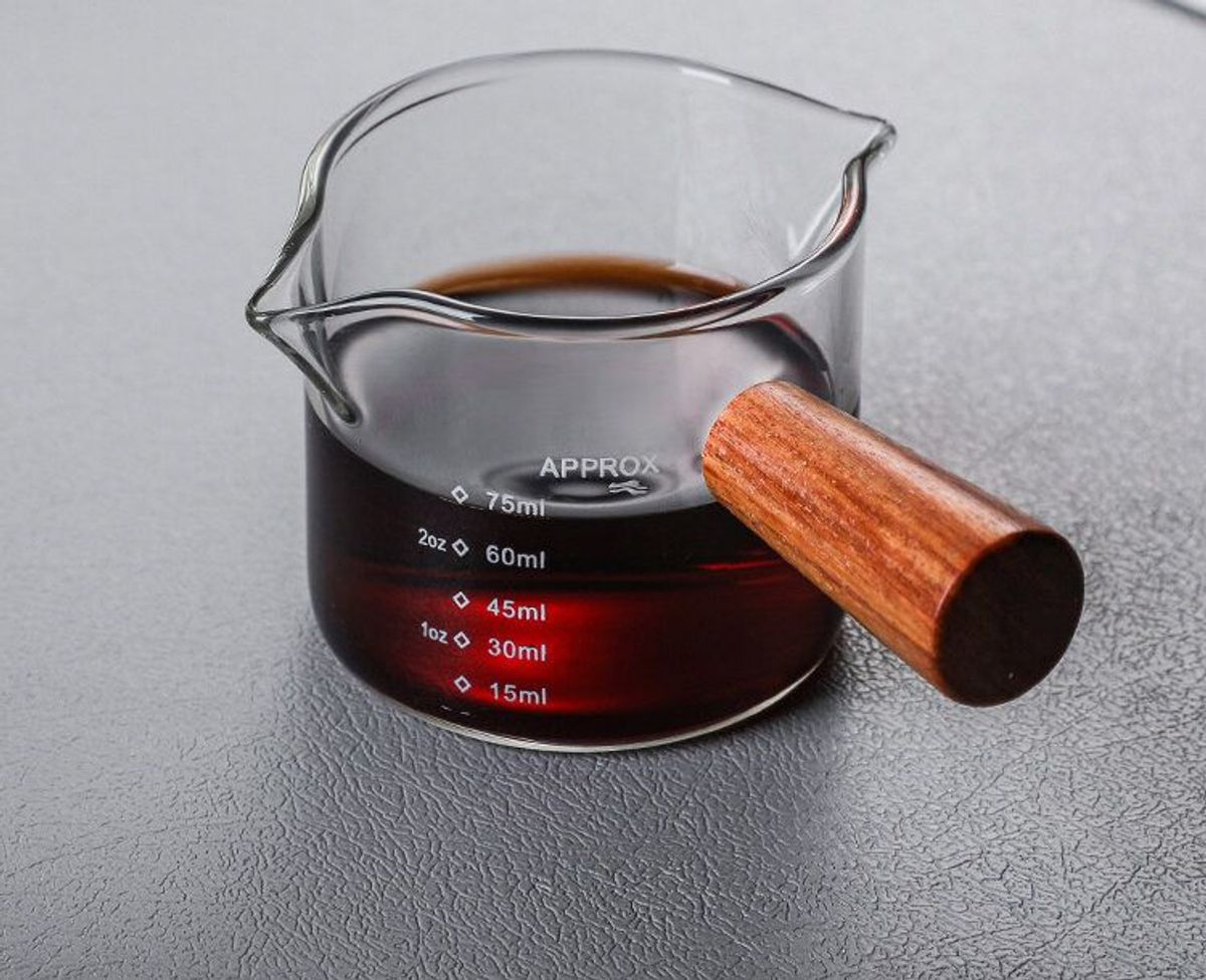 Cốc thủy tinh cán gỗ đong cà phê 75ml giá sỉ/bán buôn