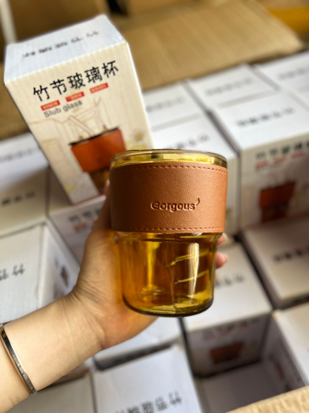 Viền cốc được bọc da thật, tạo cảm giác sang trọng