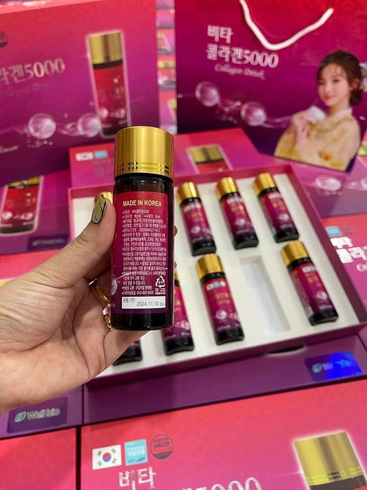 Công thức đột phá trong COLLAGEN DRINk 5000 phiên bản mới kết hợp với công nghệ Hiện đại nhất , giúp nhân đôi tốc độ trẻ hóa da, mang đến cho chị em làn da đẹp không tì vết trong thời gian ngắn nhất! Sản phẩm là sự kết hợp hoàn hảo giữa các thành phần dưỡng nhan cao cấp đặc biệt được chiết xuất từ nguồn nguyên liệu tinh khiết tuyệt đối:Collagen DRINk 5000 (50mlx10 lo chiết xuất từ da cá (10%)với các phân tử siêu nhỏ bằng ⅕ so với thủy phân thông thường ,lựu ,việt quất , grutose ,axit citric,natri citrate,hương liệu tổng hợp -> Giúp da săn chắc, căng đầy, ngăn chặn nếp nhăn và tình trạng chảy xệ.cân bằng nội tiết, cải thiện sinh lý nữ, ngăn chặn nám tàn nhang, cân bằng nội tiết tố.Hỗ trợ thanh lọc thải độc da, bảo vệ da trước những tác nhân xấu gây hại từ môi trường.COLLAGEN DRINk 5000 sẽ giúp làn da sẽ được hồi sinh nhanh chóng chỉ sau 4 tuần sử dụng.