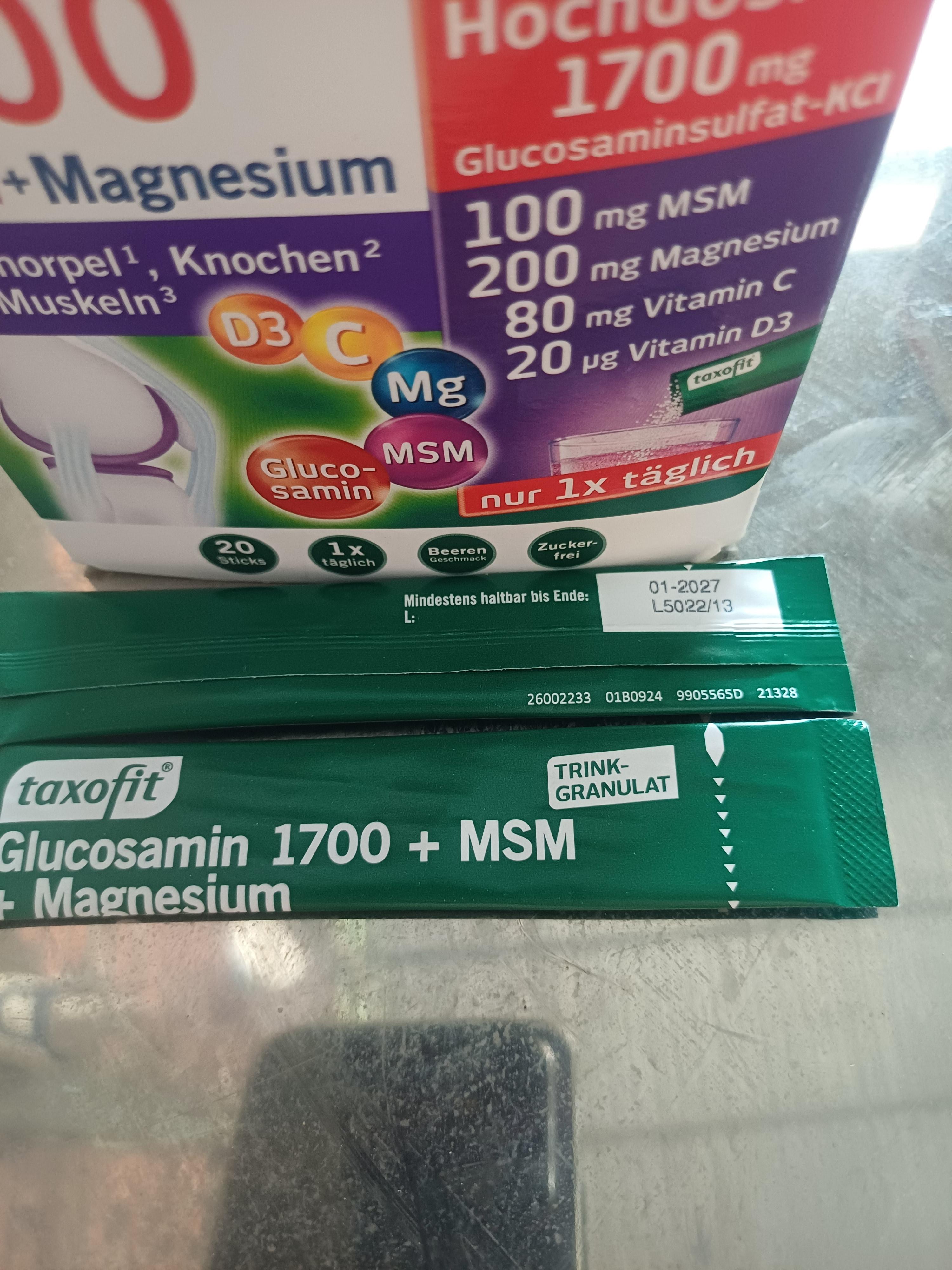 Taxofit Glucosamine 1700 + MSM + Magiê được phát triển đặc biệt để hỗ trợ sụn, xương và cơ. Vitamin C góp phần hình thành collagen bình thường, từ đó hỗ trợ chức năng bình thường của sụn và xương. Vitamin D3 và magie góp phần duy trì chức năng cơ bình thường và duy trì xương khỏe mạnh. Sản phẩm cũng chứa 1700 mg glucosamine và 100 mg MSM chỉ trong một viên.