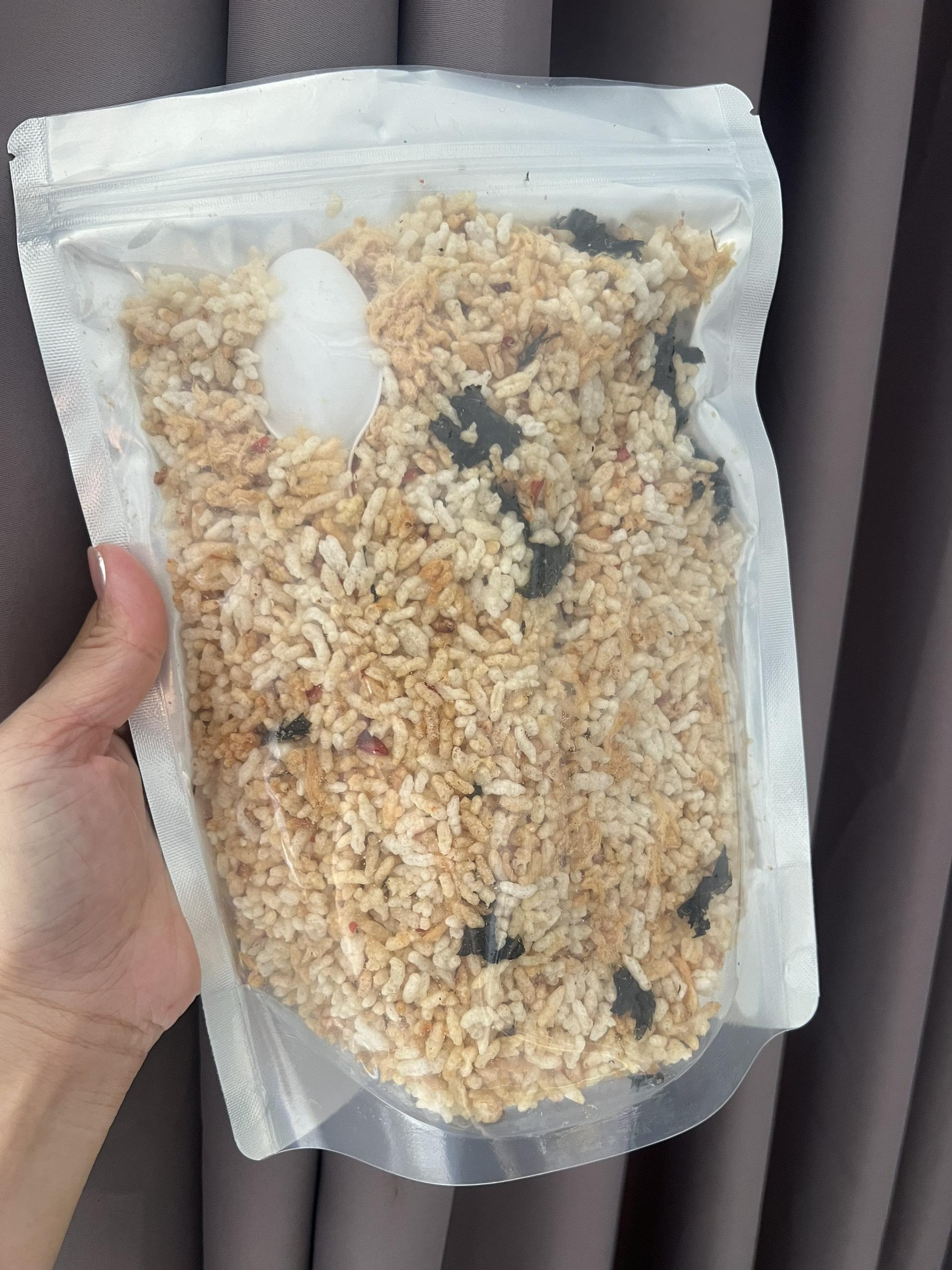 *Lưu ý : Quý khách nhớ đóng kín túi Zip để tránh cơm bị mềm , giảm chất lượng ạ!
