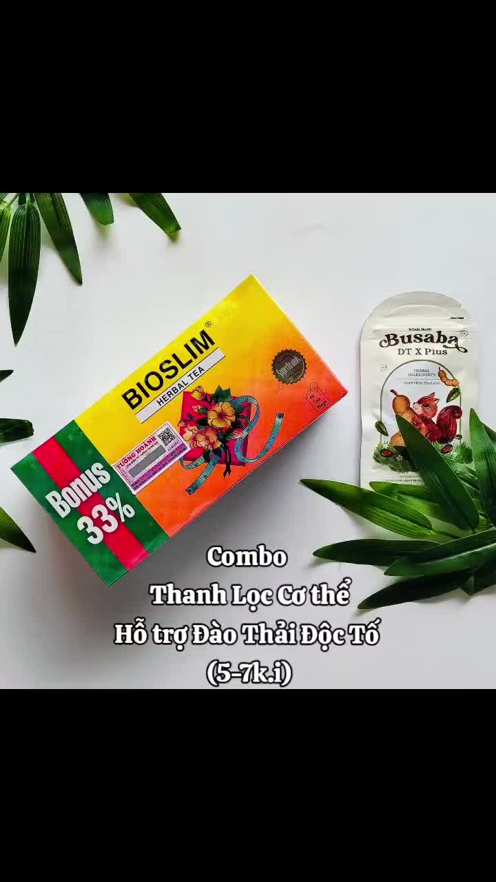 Combo 2 trong 1 – Hiệu quả gấp đôi:BIOSLIM Herbal Tea – Hỗ trợ giảm cân, đốt mỡ, cải thiện tiêu hóa, giúp ngủ ngon hơn.Bushaba Detox Plus – Thải độc, thanh lọc cơ thể, làm sạch ruột, giúp da sáng mịn từ bên trong.