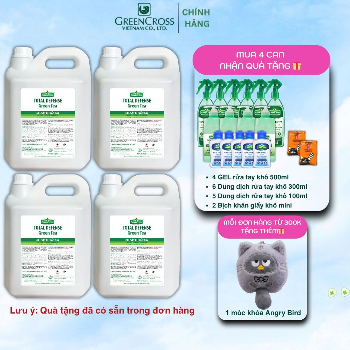 Combo 4 Can GEL rửa sát khuẩn tay khô Green Cross Total Defense 5 Lít Tiết Kiệm diệt khuẩn vượt trội 99.9%