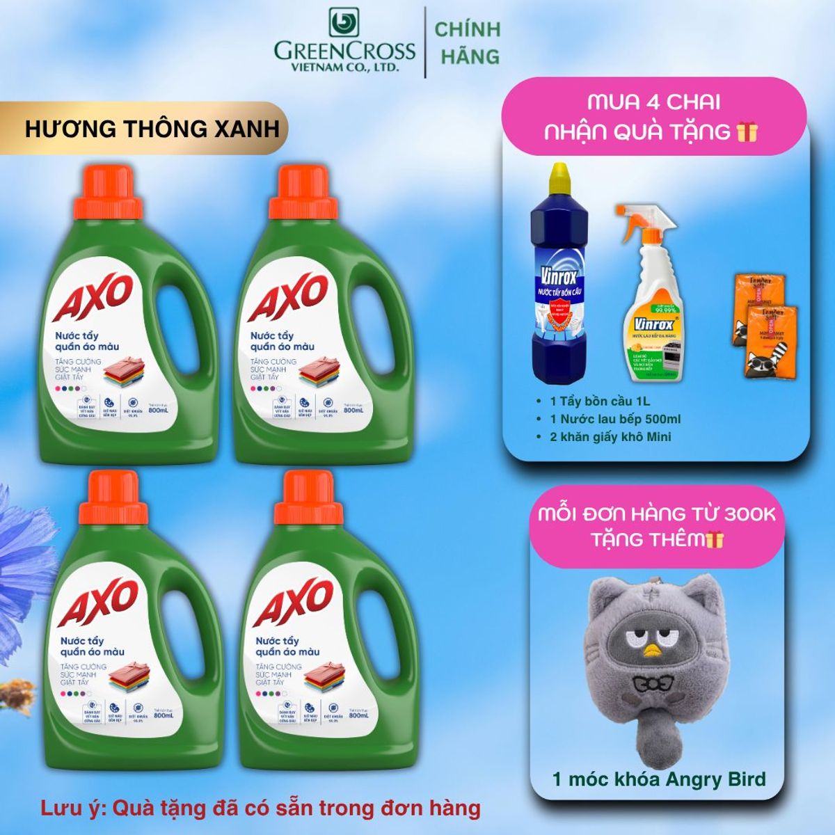 THÔNG TIN SẢN PHẨM: Nước Giặt Tẩy Quần Áo Màu AXO